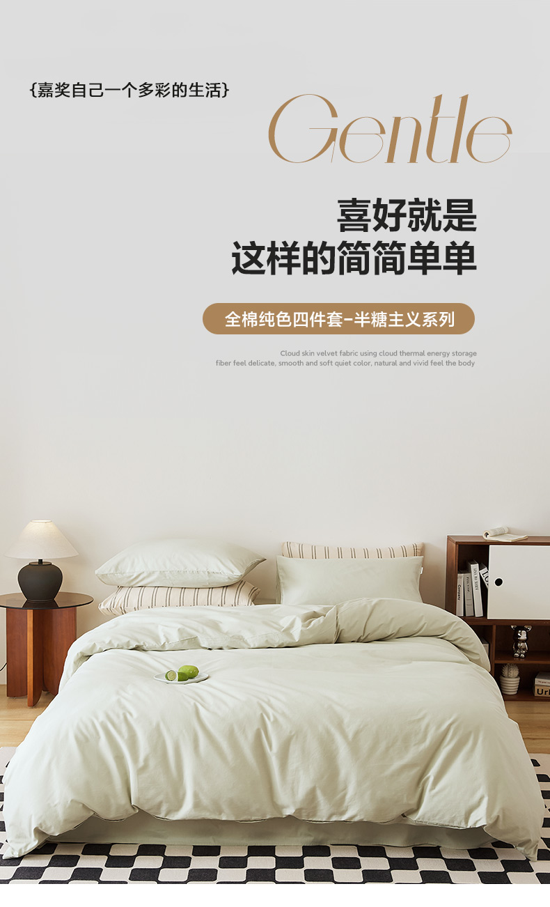 当前位置: 91家纺网 > 商品网购 > 床品套件 > 四件套 > 全棉普通四件套 > EH家居 2025新款春夏40支全棉斜纹四件套-半糖主义系列 半糖-浅草色