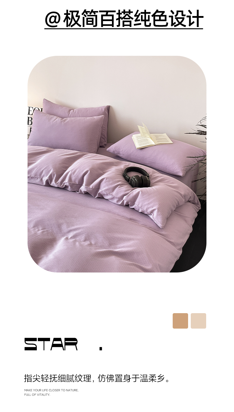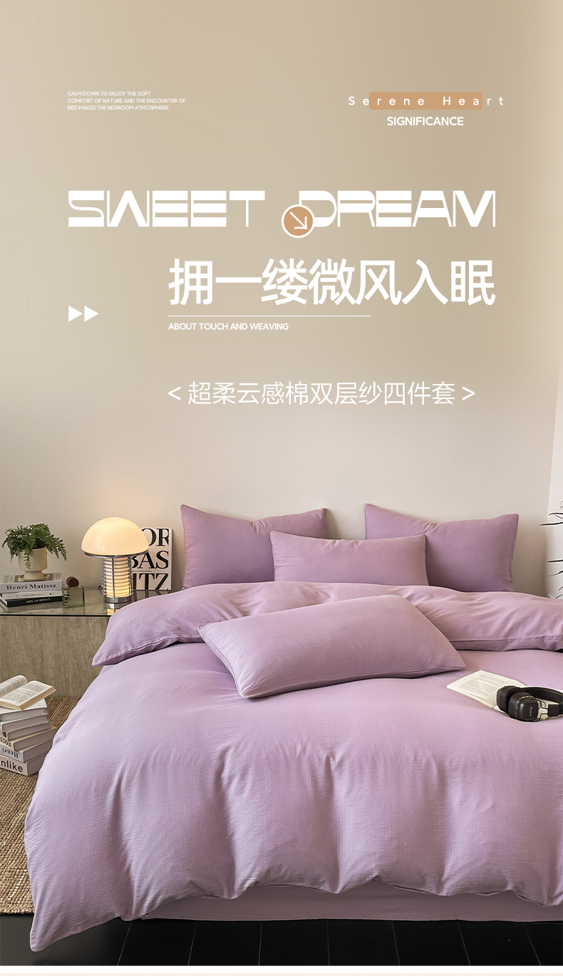 当前位置: 91家纺网 > 商品网购 > 床品套件 > 四件套 > 化纤活性四件套 > 优承佳 2025新款超柔云感m纯色双层纱四件套 双层纱-紫色