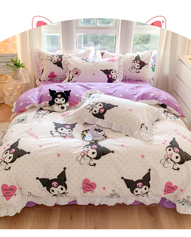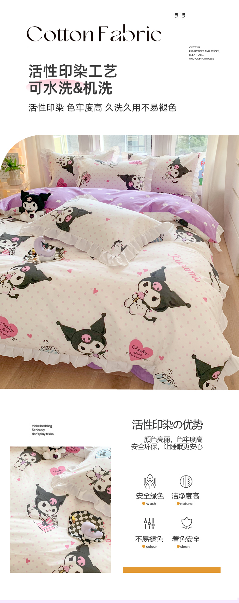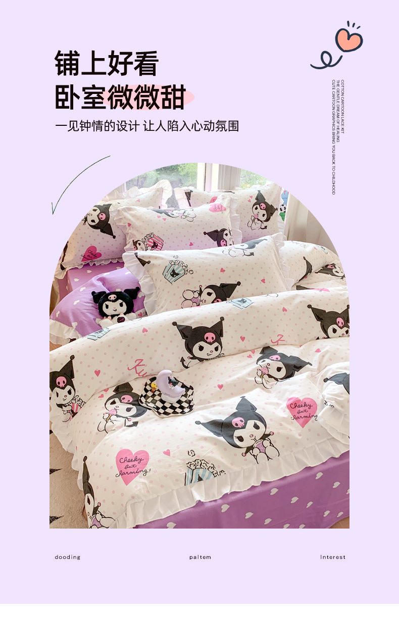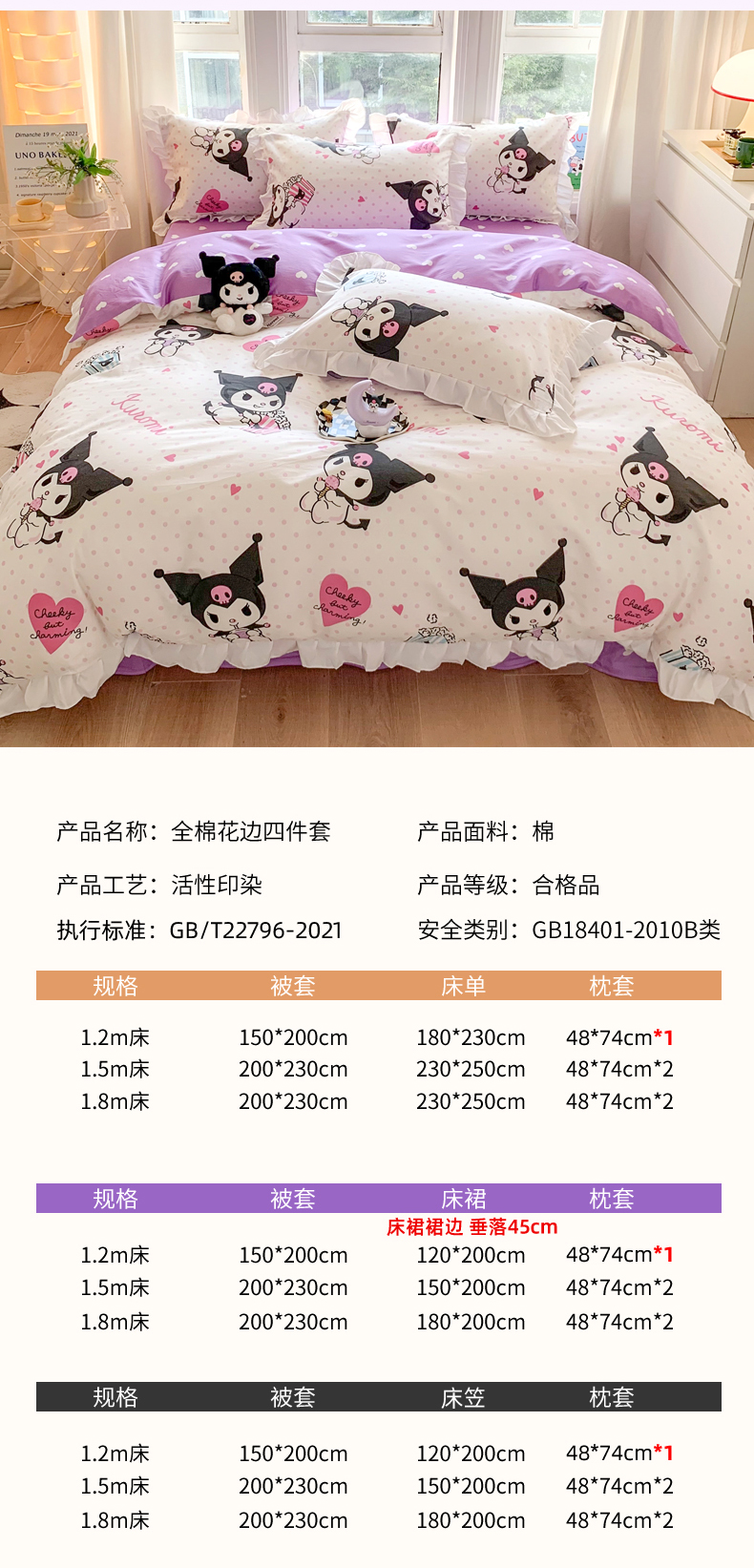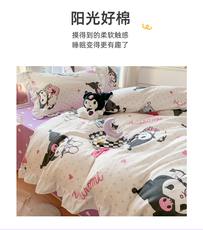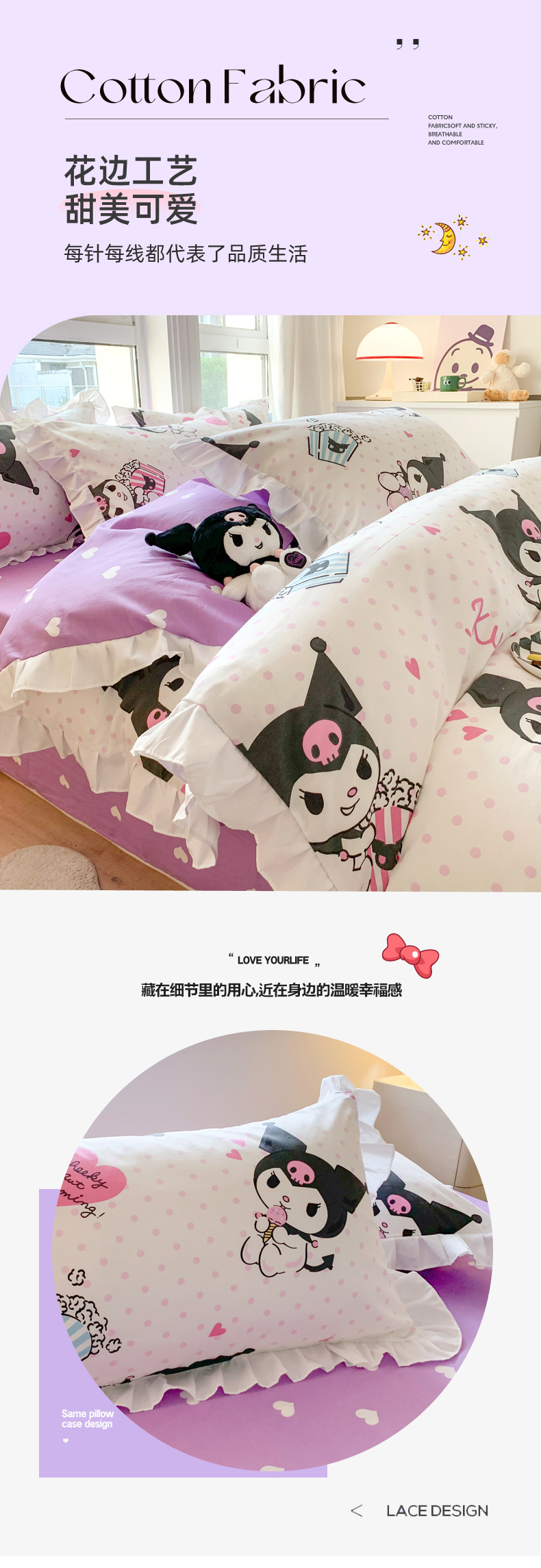 当前位置: 91家纺网 > 商品网购 > 床品套件 > 四件套 > 全棉普通四件套 > 玉元坊 2025年5月新品 三丽鸥花边被套全棉床单纯棉床裙床笠三四件套-库洛米系列 甜筒库洛米【花边款】