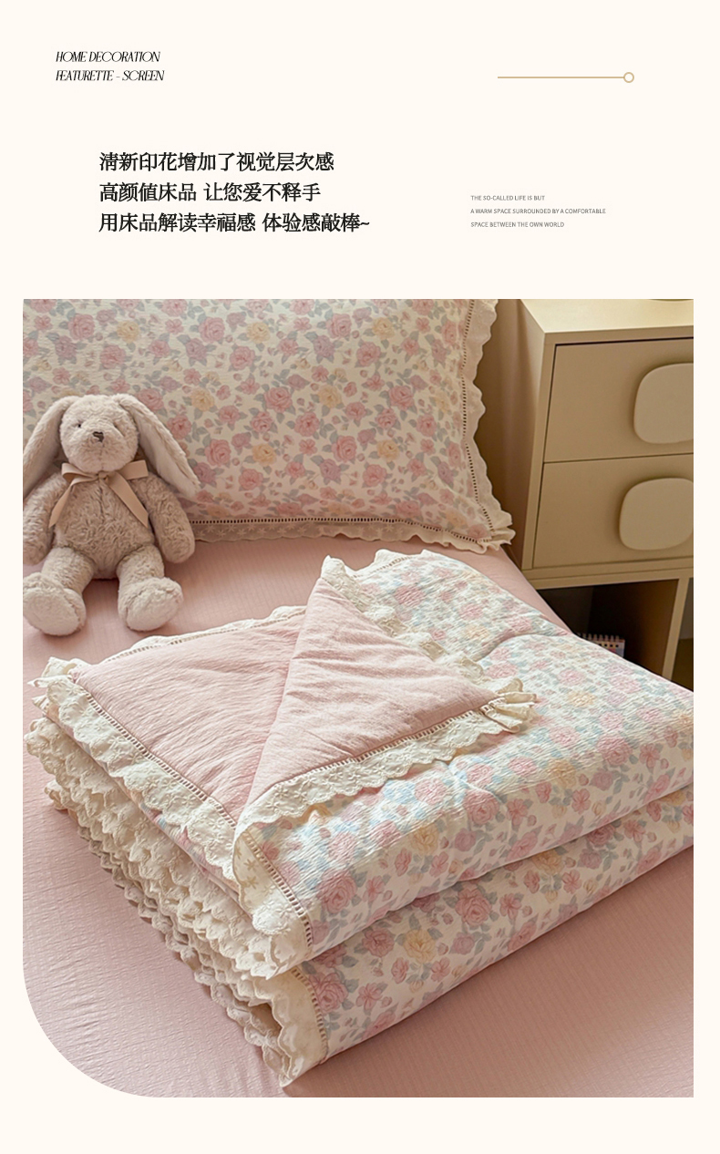 芯贝儿 2025新款全m花边木m邹邹双层纱水洗m夏被四件套 情人结