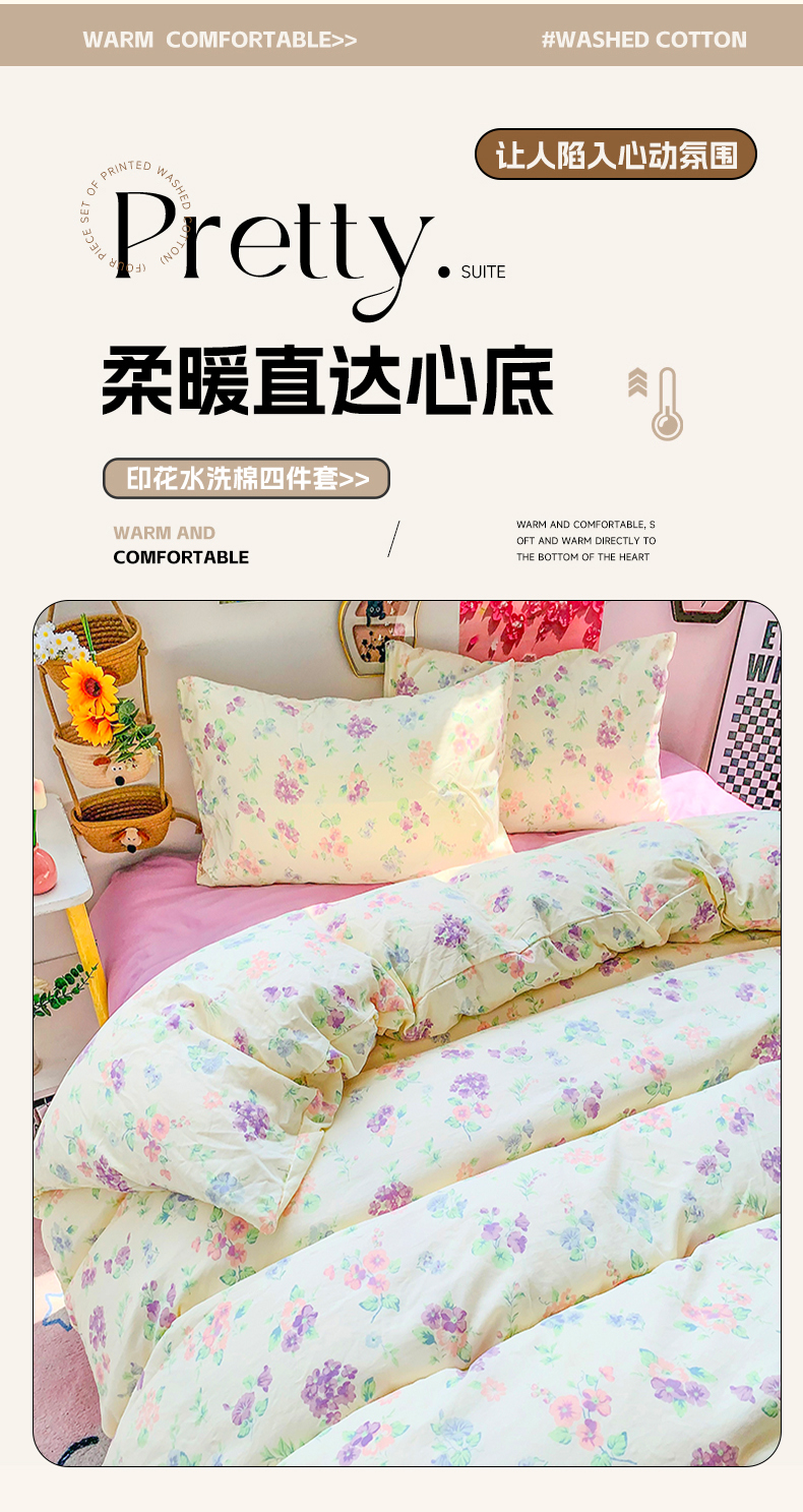 当前位置: 91家纺网 > 商品网购 > 床品套件 > 四件套 > 其它四件套 > 森璐家纺 2025新款艾特你印花水洗棉床单床笠四件套 紫色烂漫