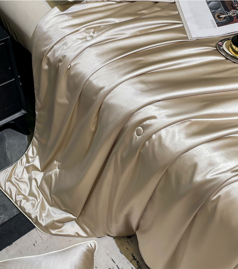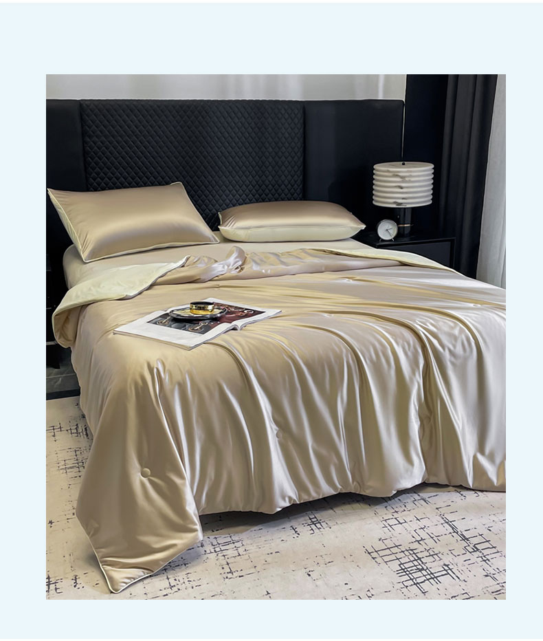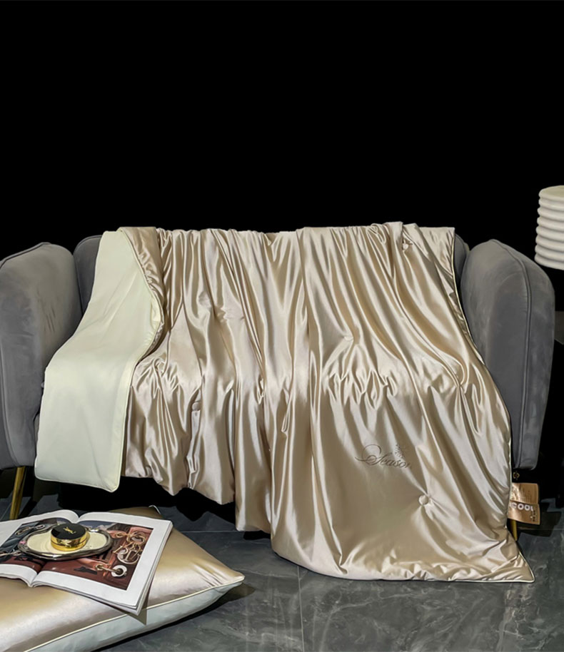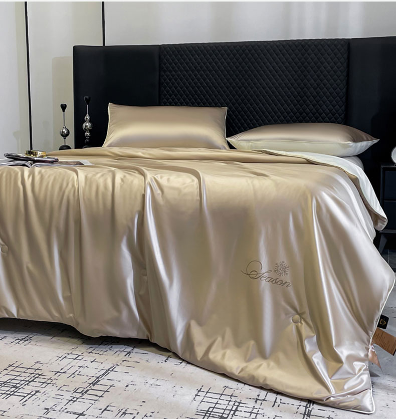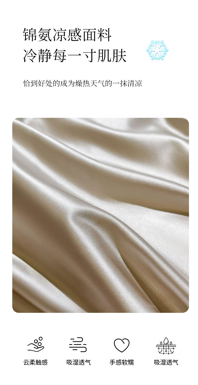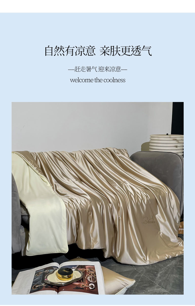 商品名称:金喜 2025春夏新款冰丝绸夏被7A抗菌冰肌夏被空调被锦纶氨纶夏凉被薄被子 香槟色