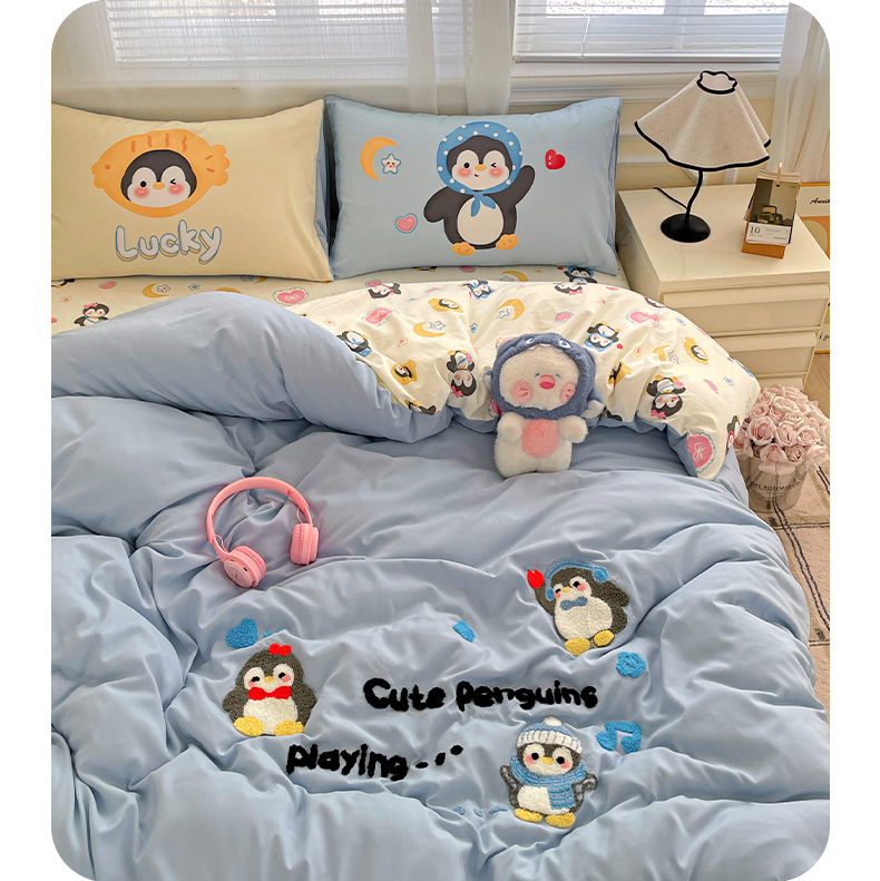 (总)一霖家纺 2025新款高克重牛奶绒床盖款毛巾绣四件套,吹泡泡黄色,吹泡泡蓝色,过生日的海宝和派派,晚安小新,小新大白