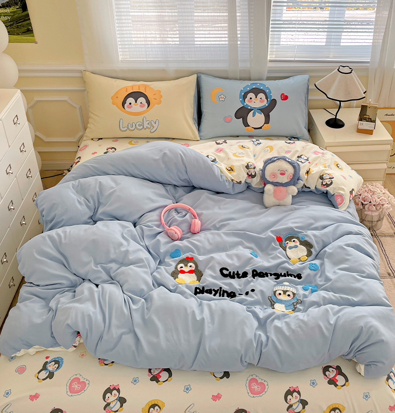 (总)一霖家纺 2025新款大版卡通牛奶绒四件套,搞怪新新紫,俏皮小新-黄,俏皮小新-蓝,甜心猫咪,星空小新