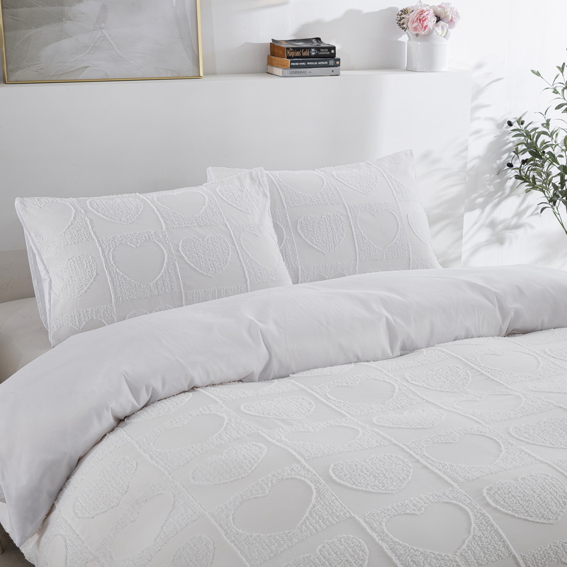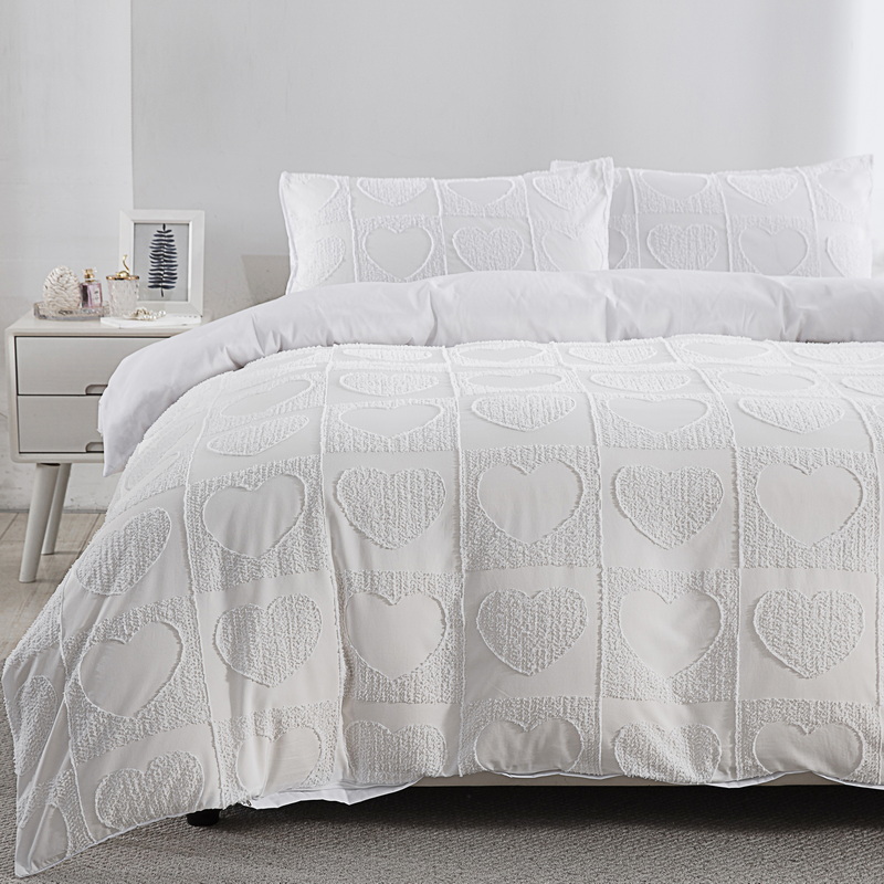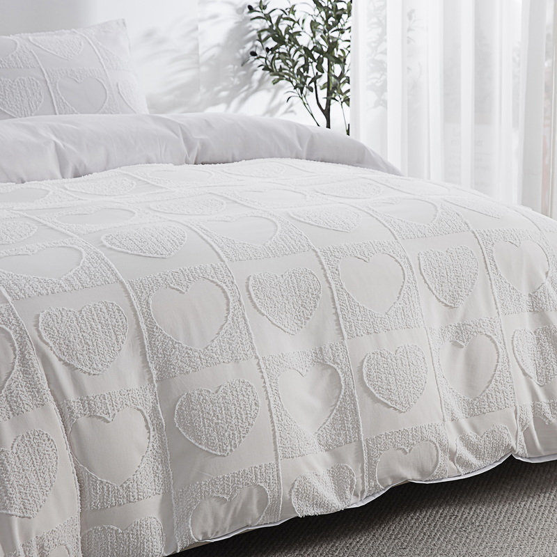 当前位置: 91家纺网 > 商品网购 > 跨境商品 > 床上用品(Bedding) > 床品套件(Bedding Comforter Sets) > 子不语家纺2025新款跨境外贸 剪花簇绒纯色三件套亚马逊Temu速卖 通Shein沃尔玛专供 爱心白