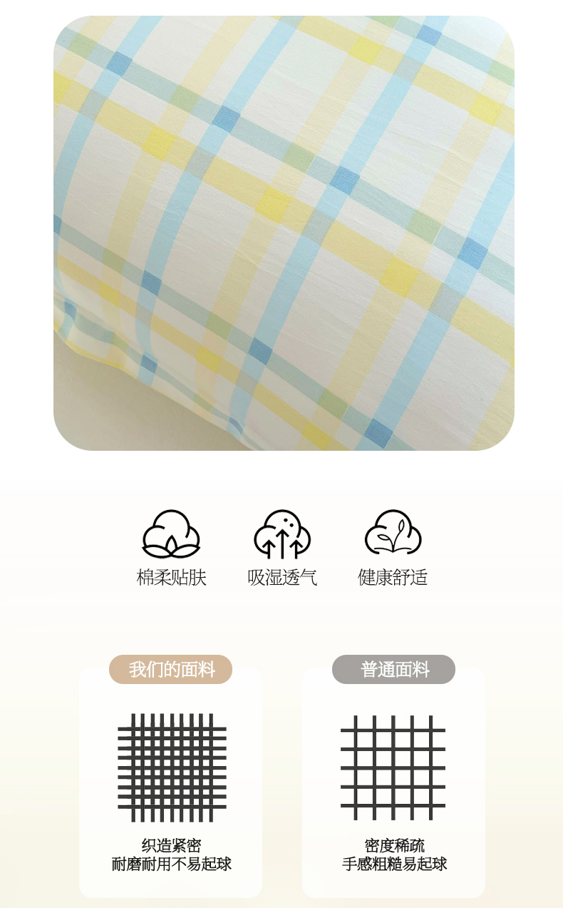 商品名称:雨彤家纺 2025年新款A类条纹水洗棉枕套 格心生活