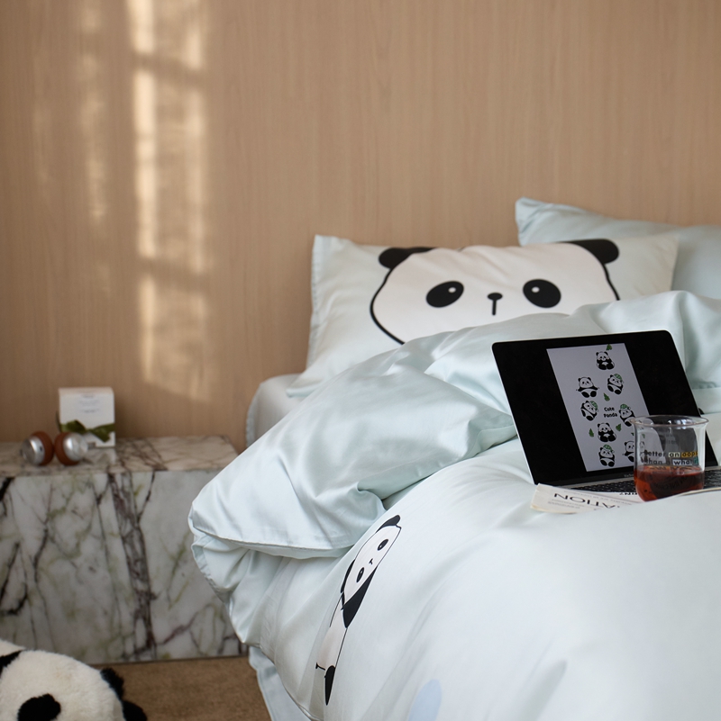 商品名称:安莱生活2025春夏新款天丝棉四件套 熊猫花花