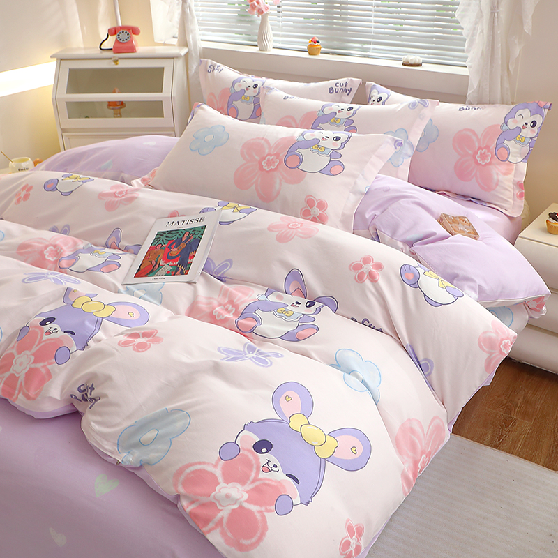 当前位置: 91家纺网 > 商品网购 > 床品套件 > 四件套 > 全棉普通四件套 > 牧笛缘家纺 2025新款全棉12868四件套 粉色兔宠