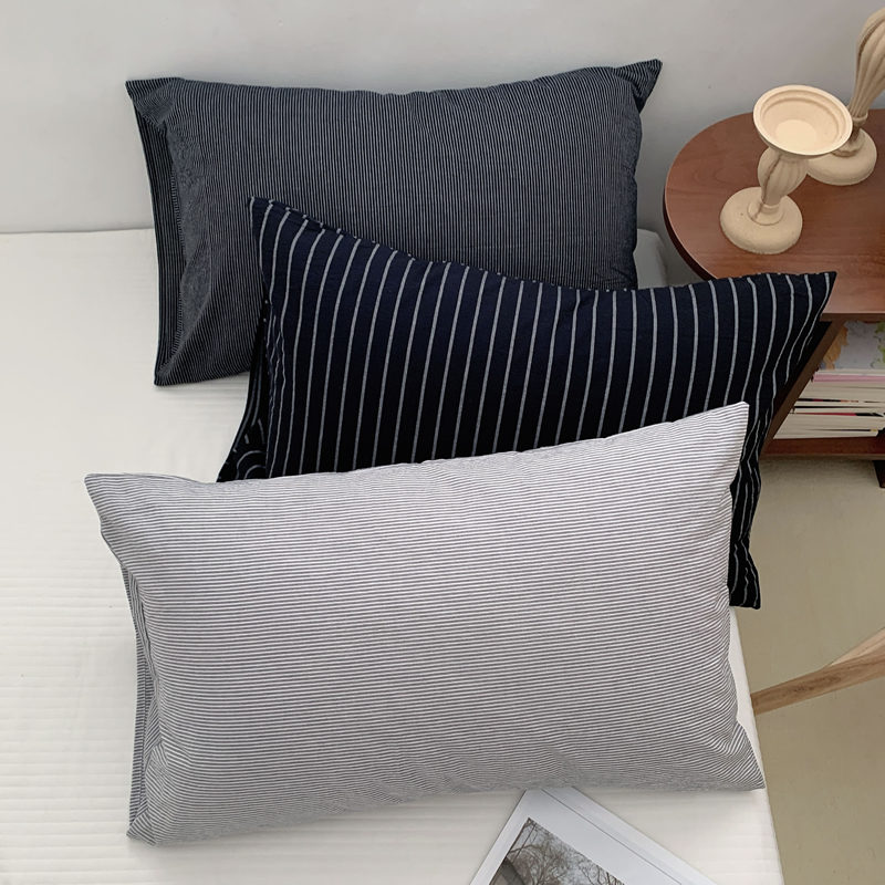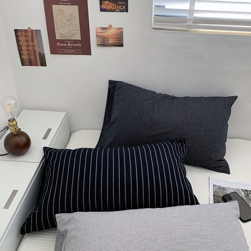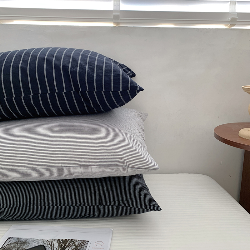 柚可家居 2024新款水洗棉条纹系列单枕套-系列二 细黑竖条纹
