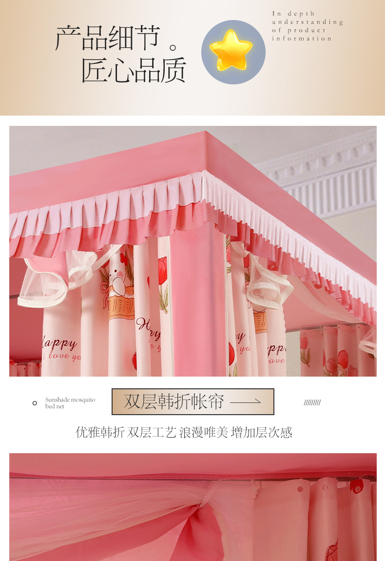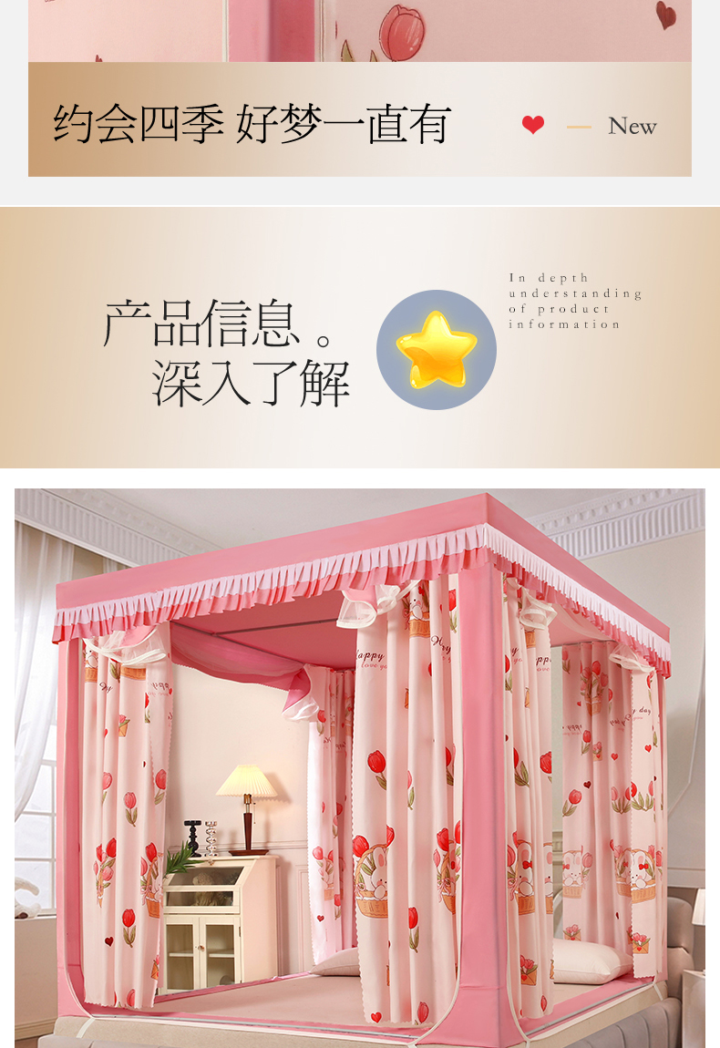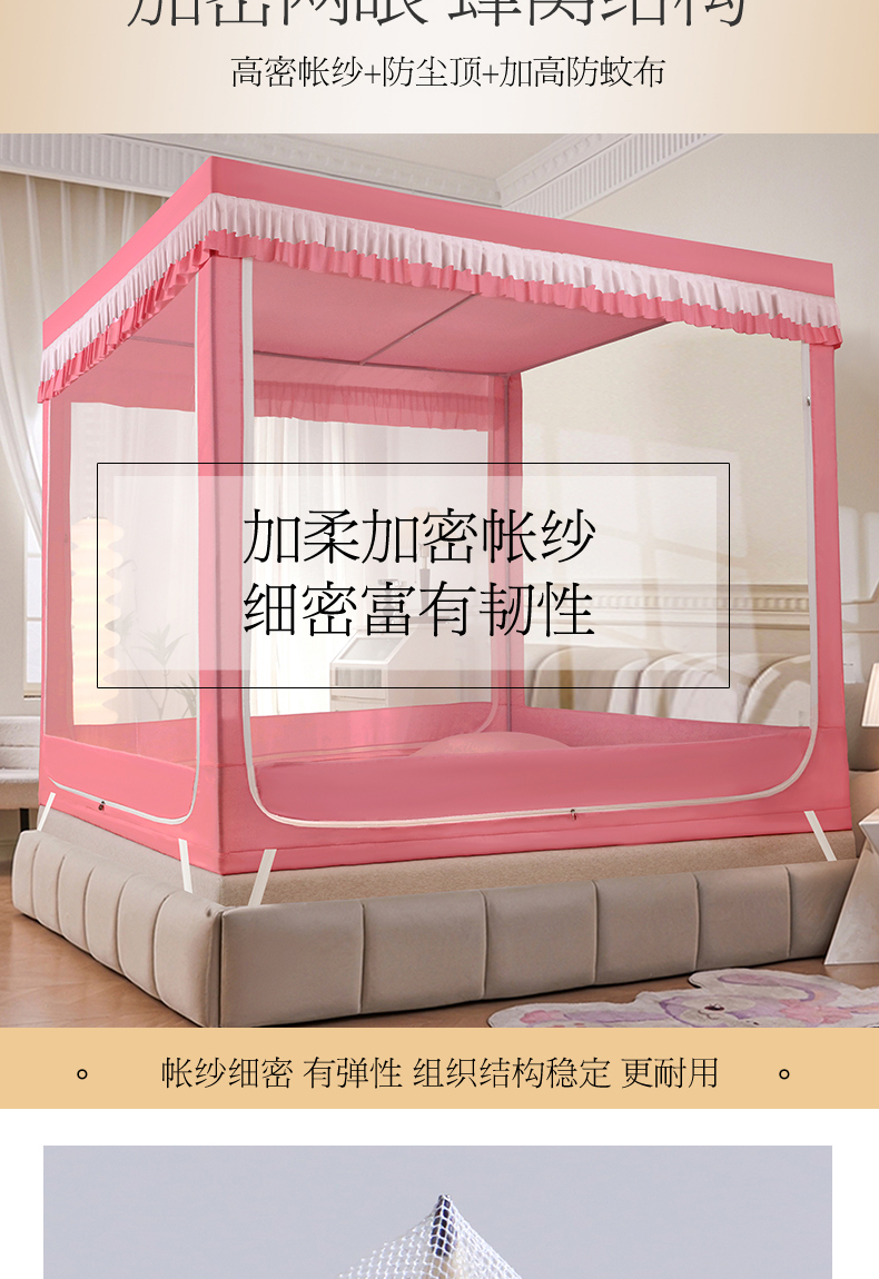 当前位置: 91家纺网 > 商品网购 > 床上用品 > 蚊帐 > 坐床式蚊帐 > 显高蚊帐 2025春夏新款U门花边款坐床遮光防尘床帘式蚊帐 郁金香-花边款