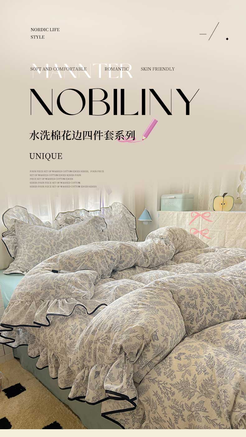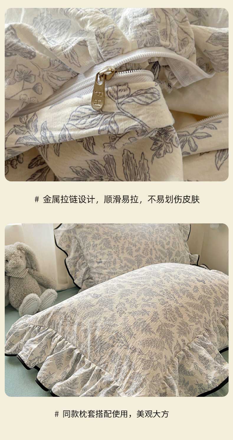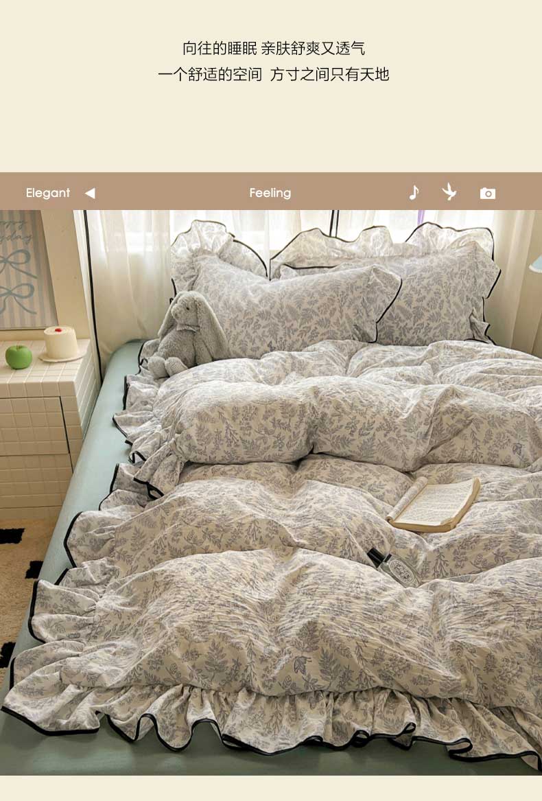 当前位置: 91家纺网 > 商品网购 > 床品套件 > 四件套 > 水洗棉四件套 > 繁花家居 2025春夏新款学生季韩式云感针织棉大花边木耳边四件套 花枝蝶影