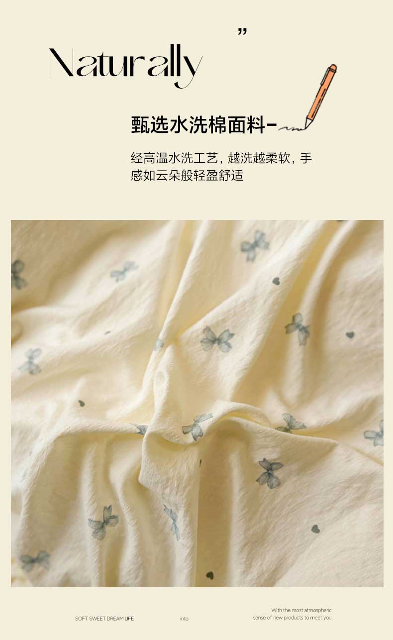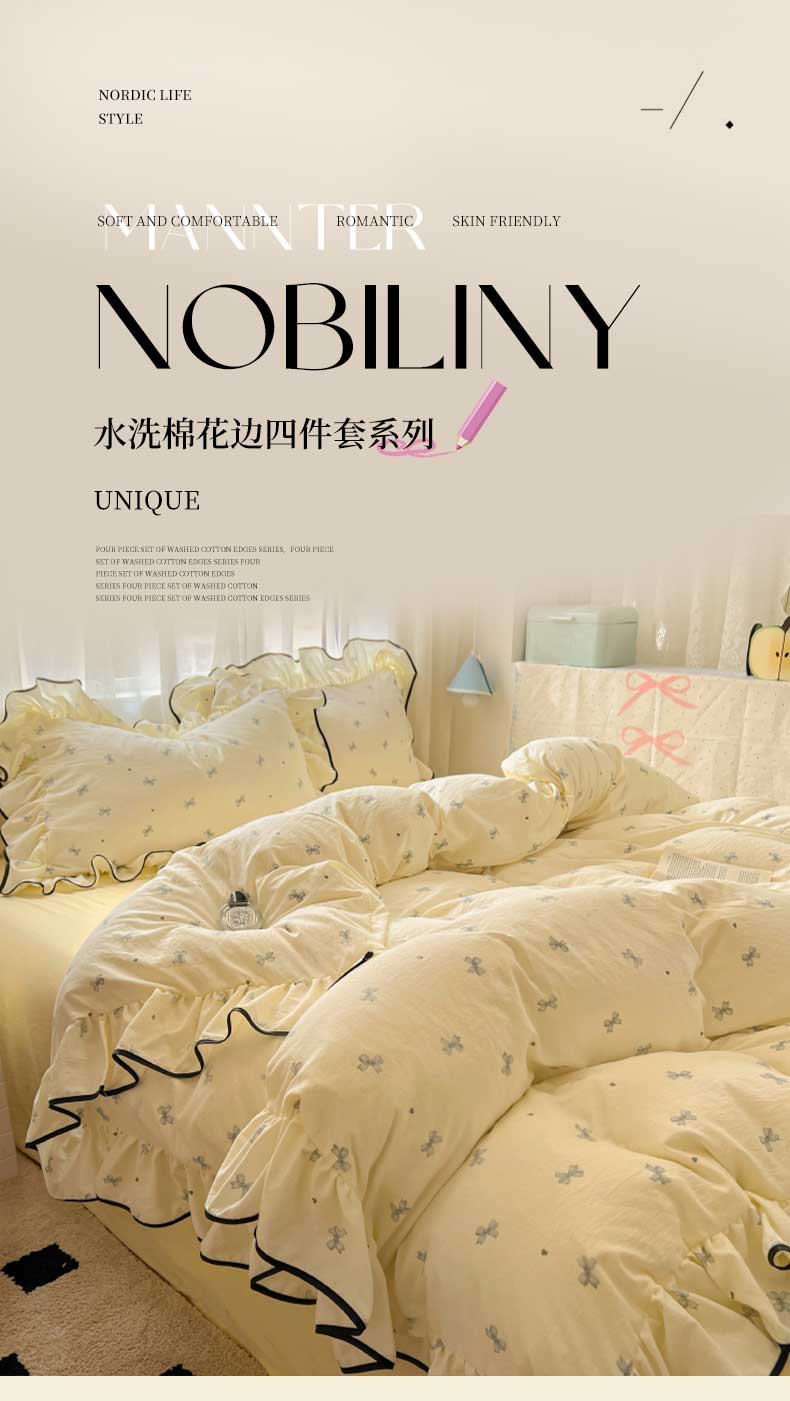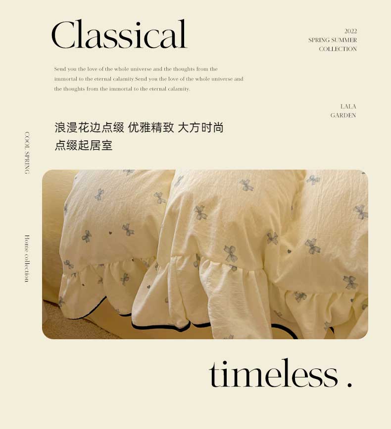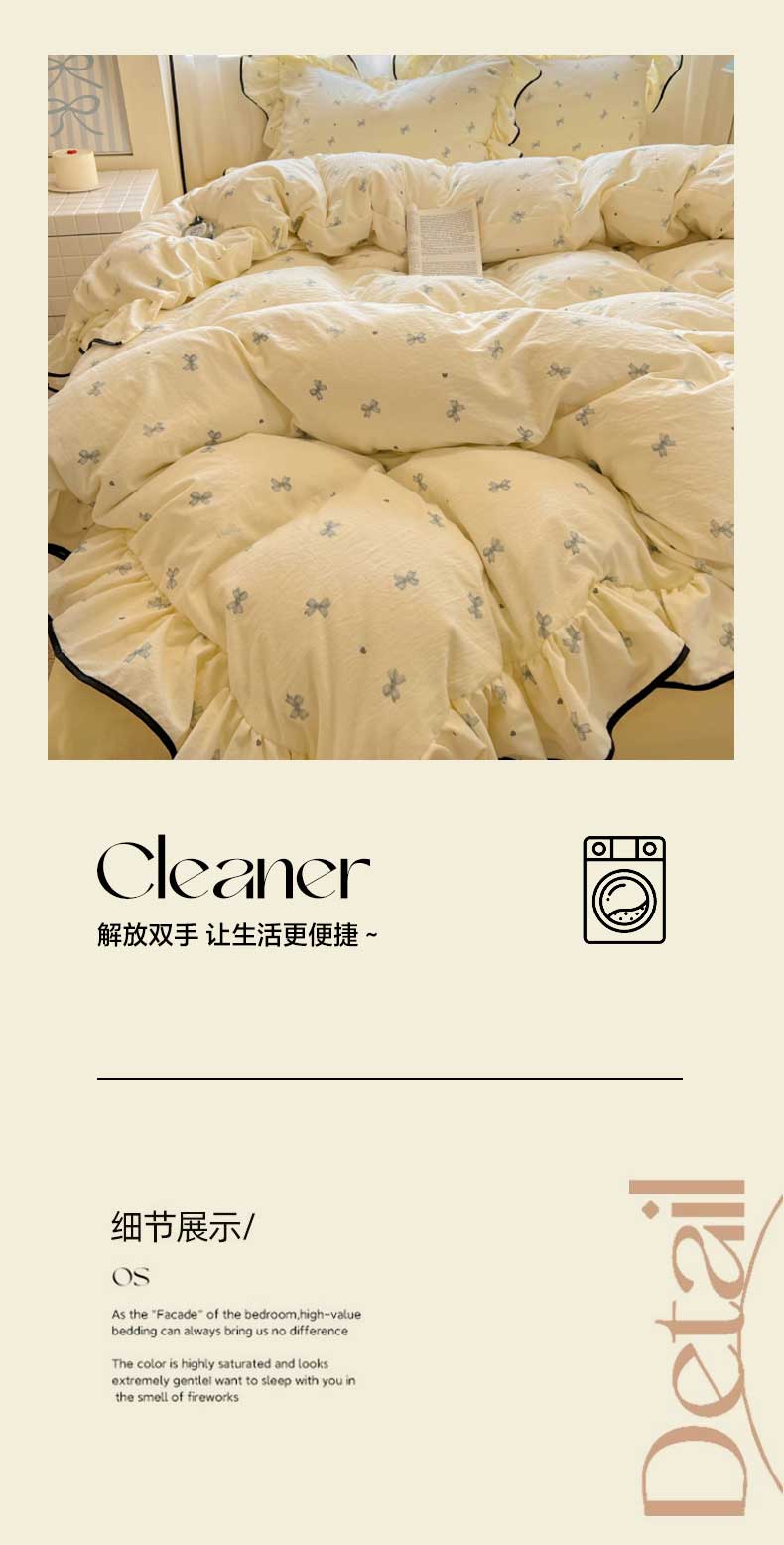 当前位置: 91家纺网 > 商品网购 > 床品套件 > 四件套 > 水洗棉四件套 > 繁花家居 2025春夏新款学生季韩式云感针织棉大花边木耳边四件套 芝士少女心结