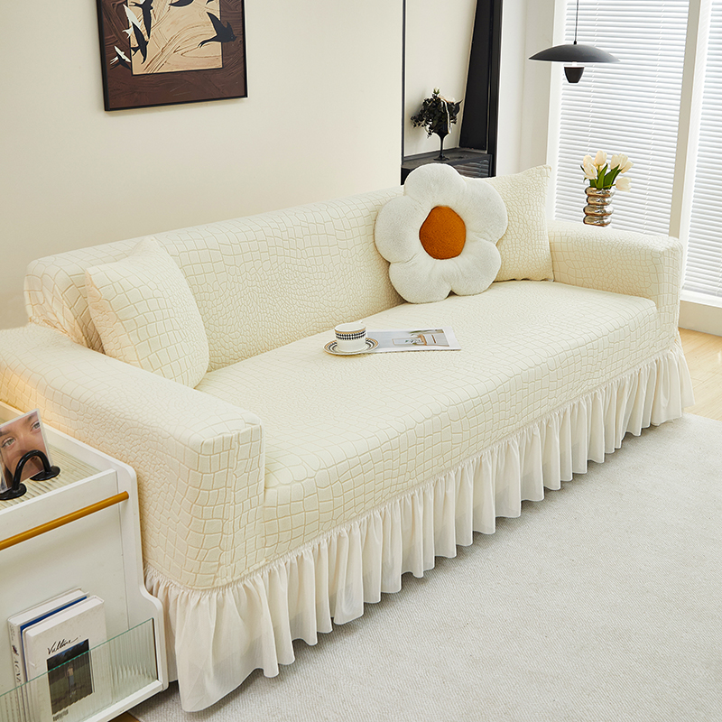 当前位置: 91家纺网 > 商品网购 > 居家布艺 > 坐垫/椅垫/沙发垫 > 沙发垫 > 丝绮鹿 2025新款雕花绒水立方沙发套裙边款(三人图) 米白