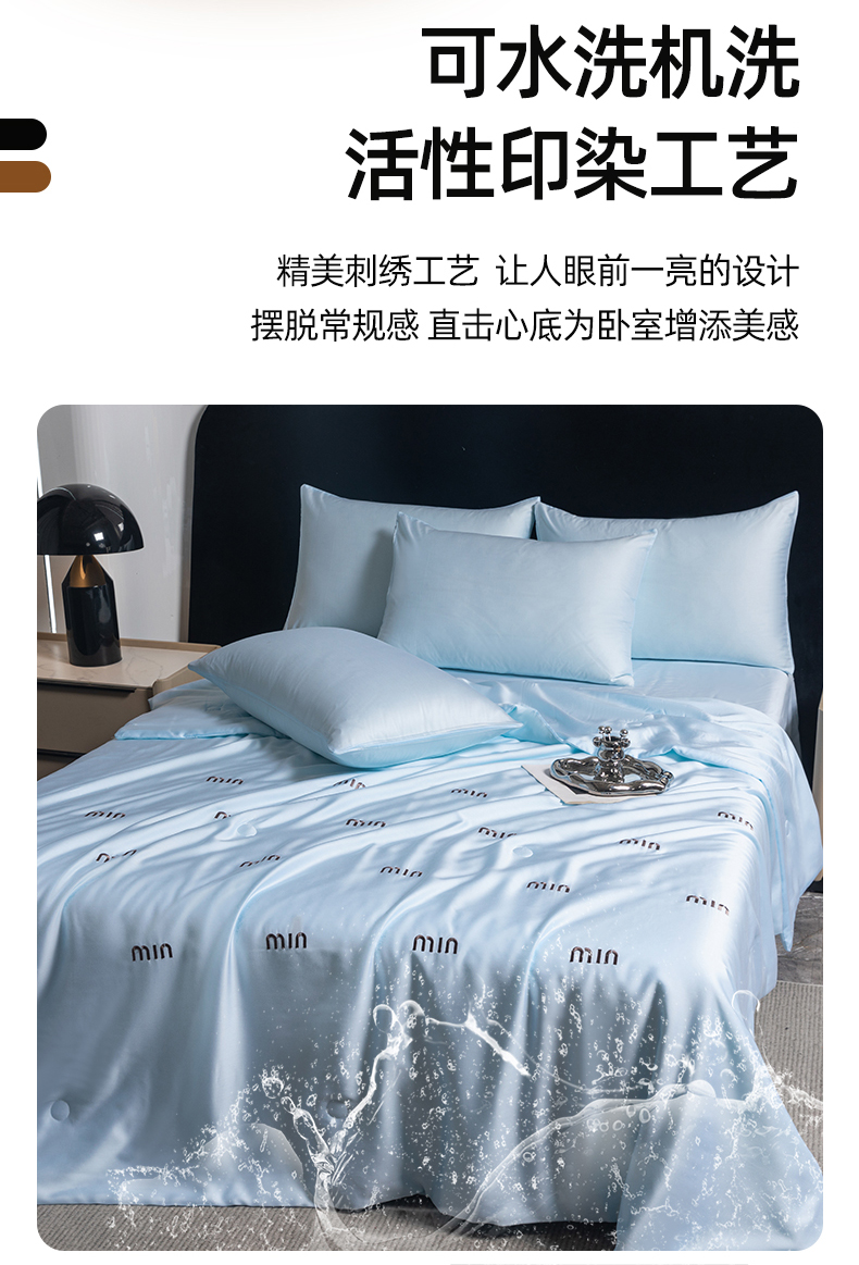 • 91家纺网 家纺一手货源 找家纺 小叮当家纺仓储工厂店 (提供买家秀 爆款花型 不断货)2025新款A类水洗真丝满绣夏被夏凉被四件套 minmin水蓝