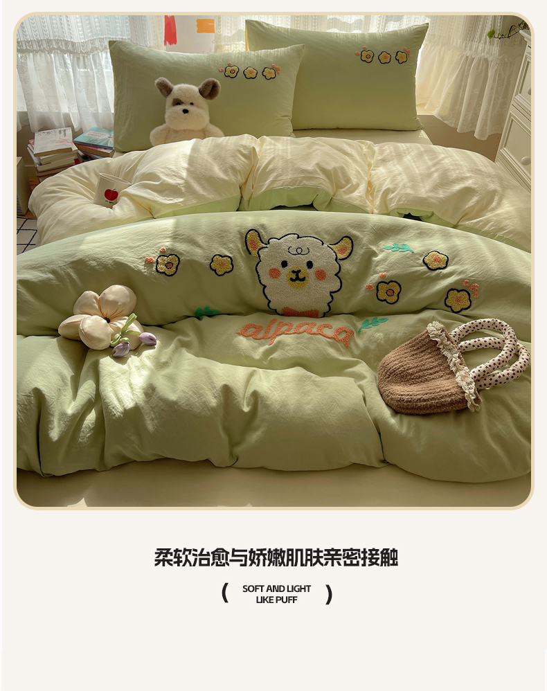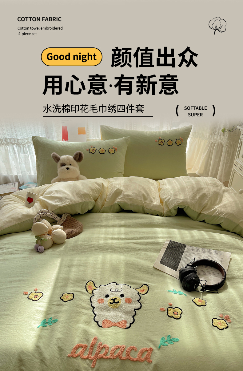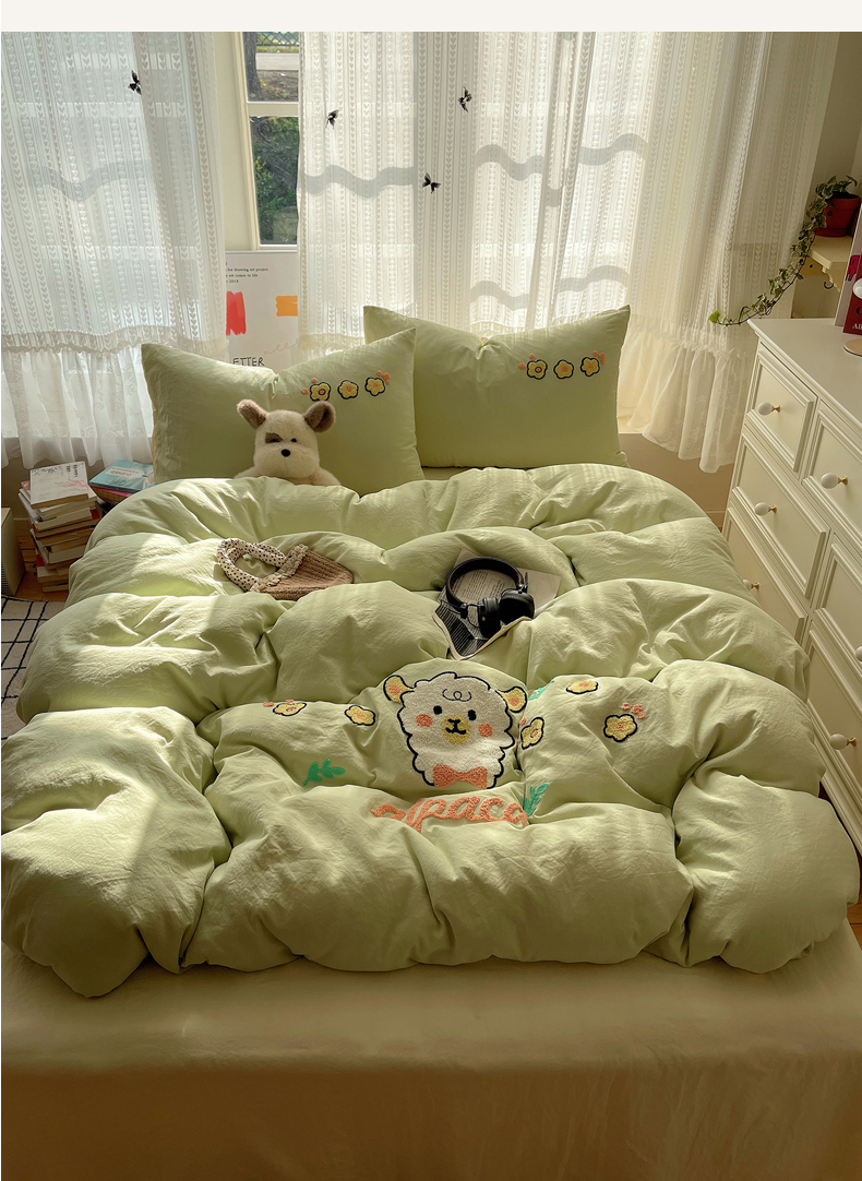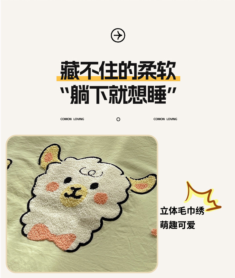 当前位置: 91家纺网 > 商品网购 > 床品套件 > 四件套 > 化纤活性四件套 > 优兰朵 2025新款爆款宿舍可爱水洗棉毛巾绣四件套 青青小羊