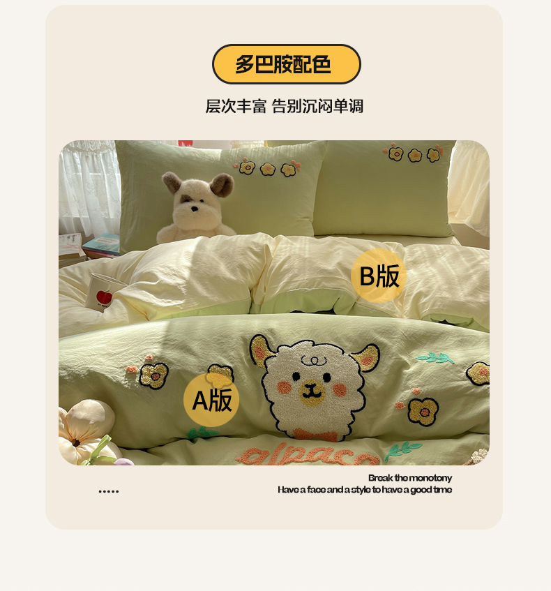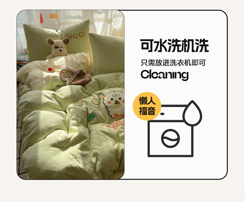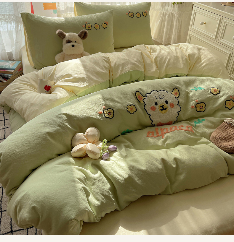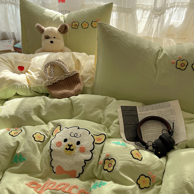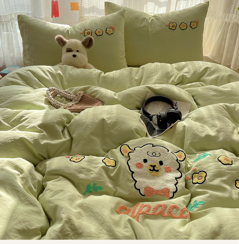 当前位置: 91家纺网 > 商品网购 > 床品套件 > 四件套 > 化纤活性四件套 > 优兰朵 2025新款爆款宿舍可爱水洗棉毛巾绣四件套 青青小羊