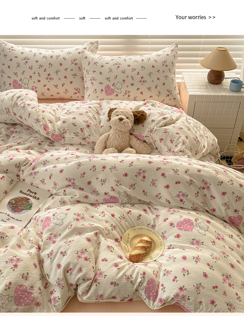 当前位置: 91家纺网 > 商品网购 > 床品套件 > 四件套 > 水洗棉四件套 > 繁花家居 2025学生季第二波木棉水洗棉四件套三件套跑量款 花花狗