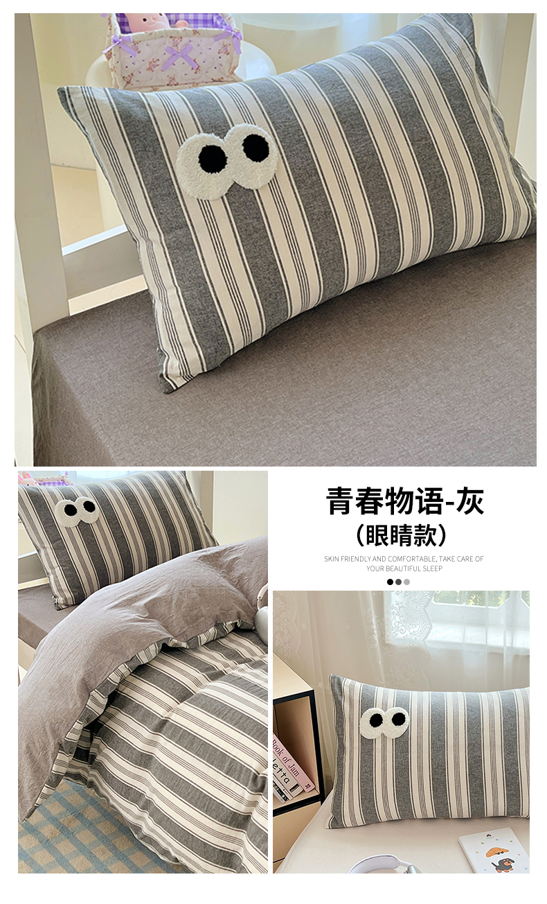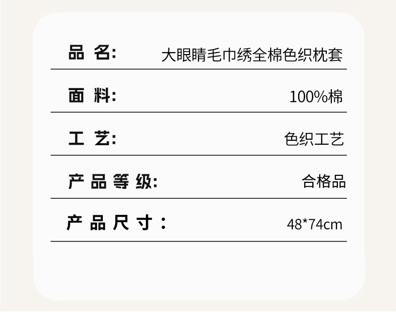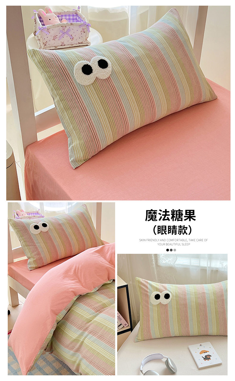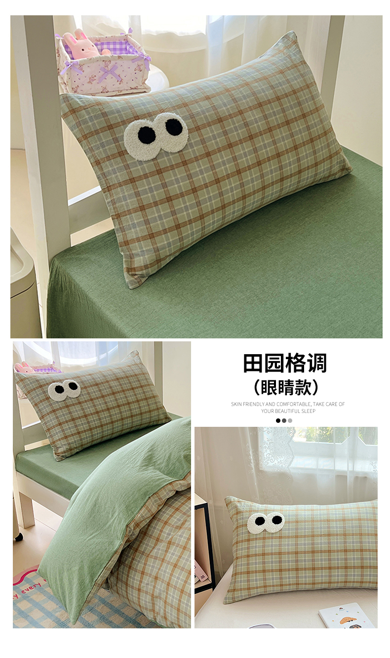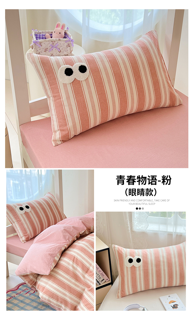 商品名称:(总)2025新款大眼睛毛巾绣色织全棉水洗棉四件套软糯亲肤单品单枕套四季通用
