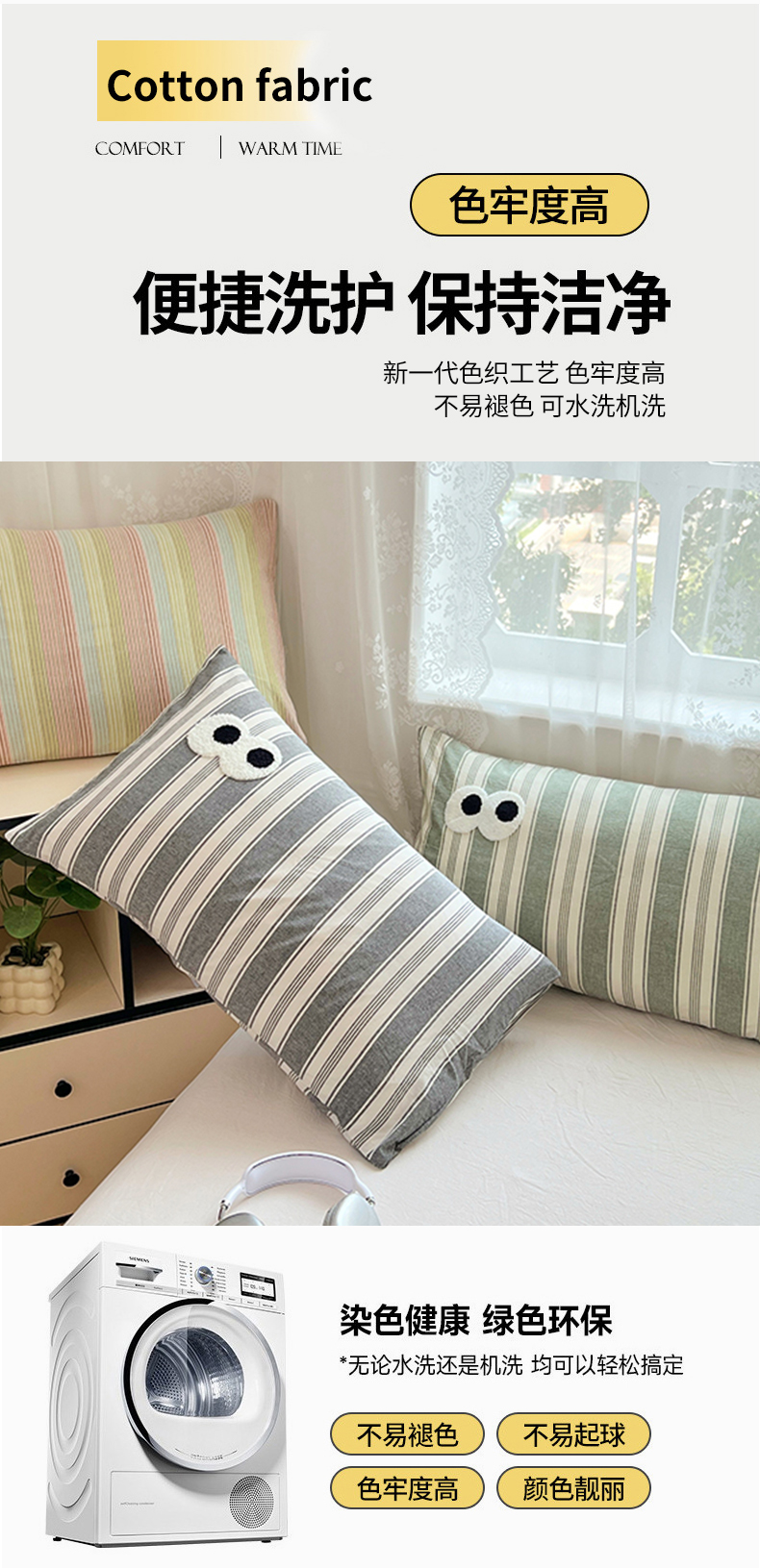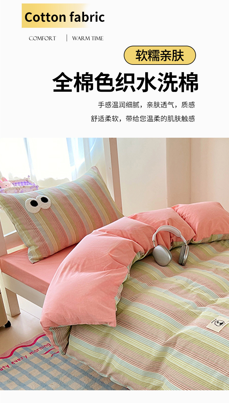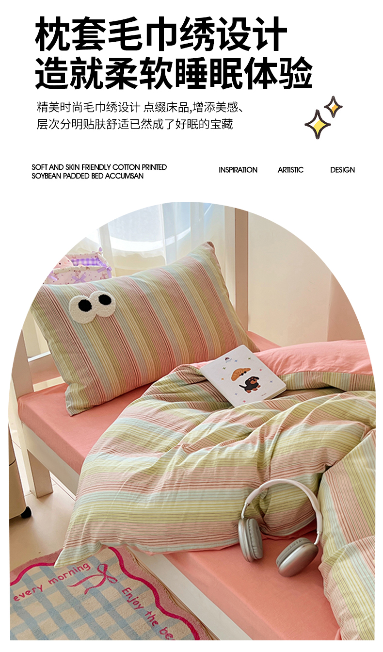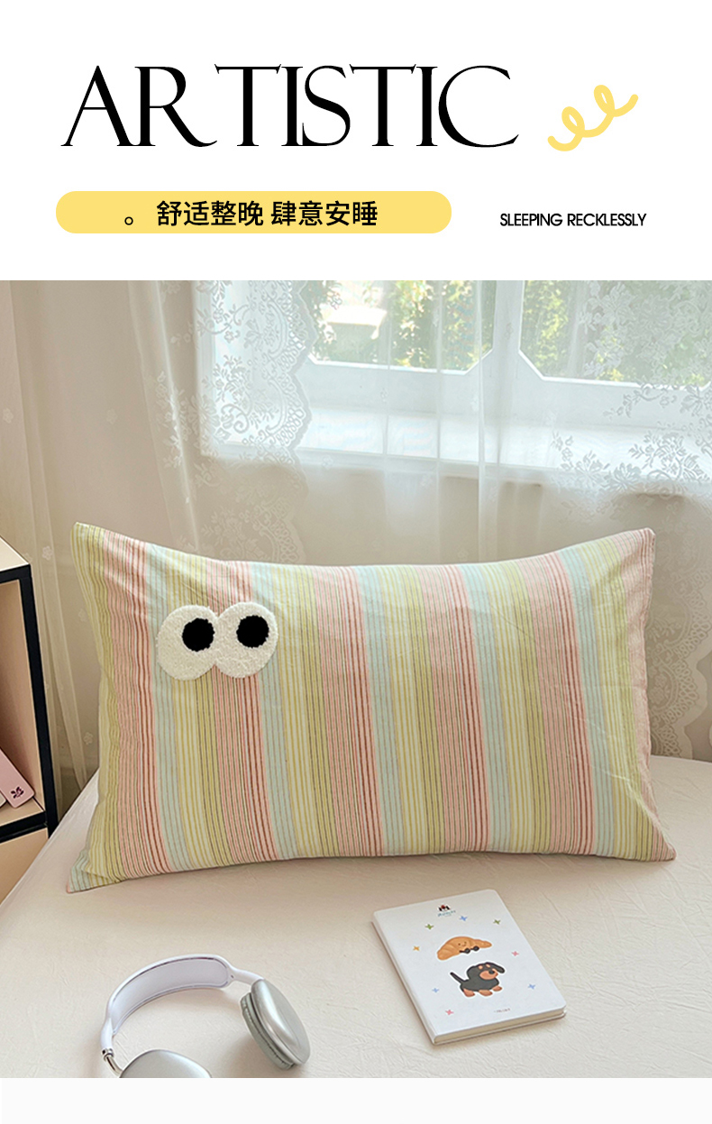商品名称:(总)2025新款大眼睛毛巾绣色织全棉水洗棉四件套软糯亲肤单品单枕套四季通用
