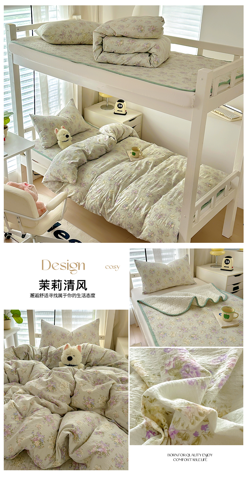商品名称:美梦家纺2025新款木棉皱皱纱学生床盖四件套 茉莉清风