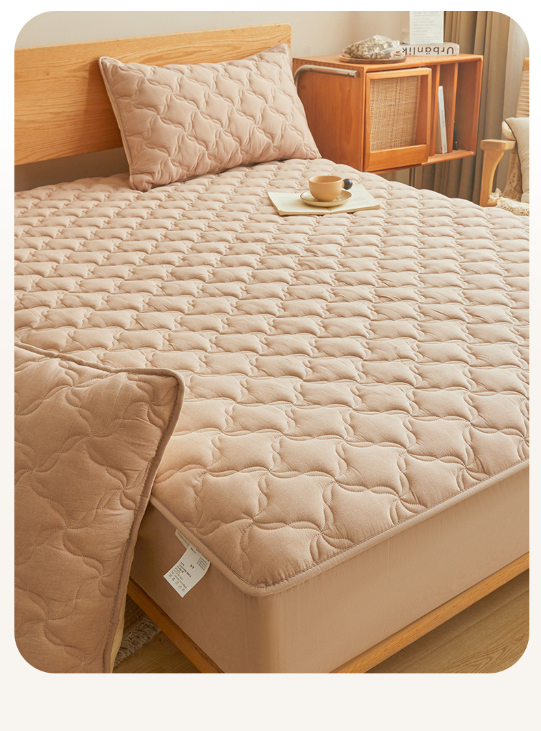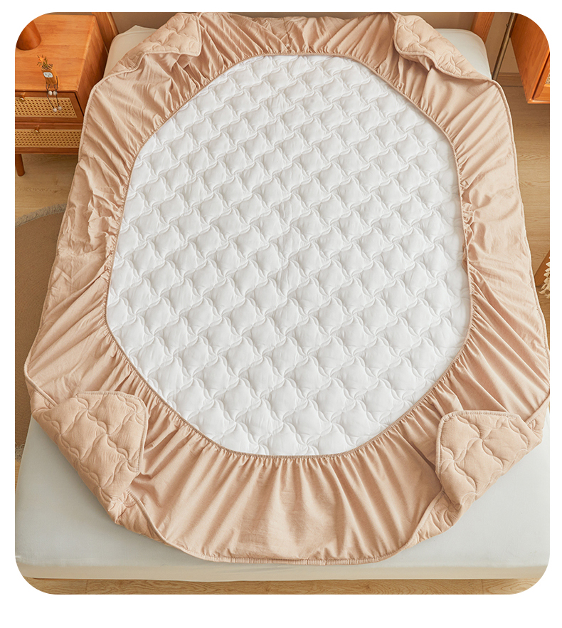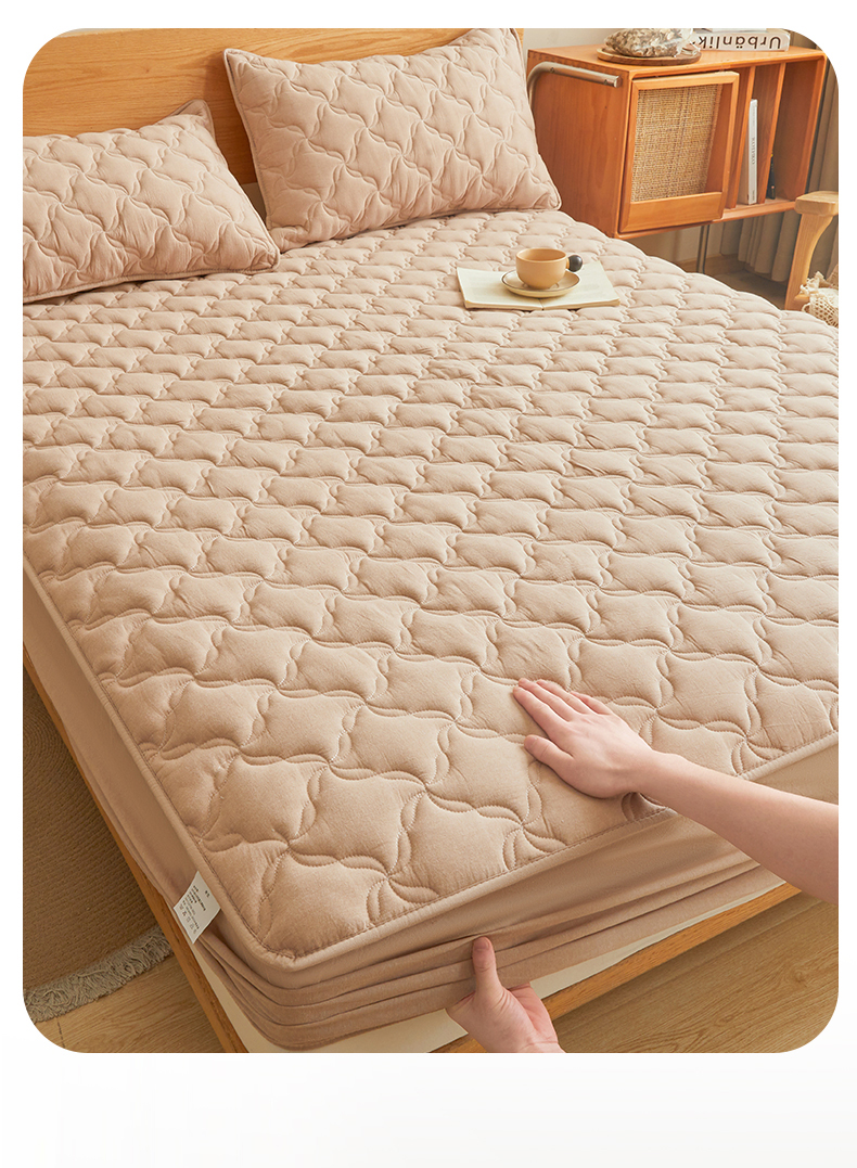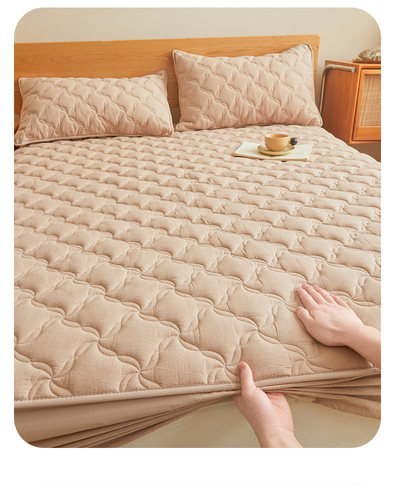 多谷家纺 2026新款纯棉全棉色织水洗棉大豆夹棉床笠三件套 卡其