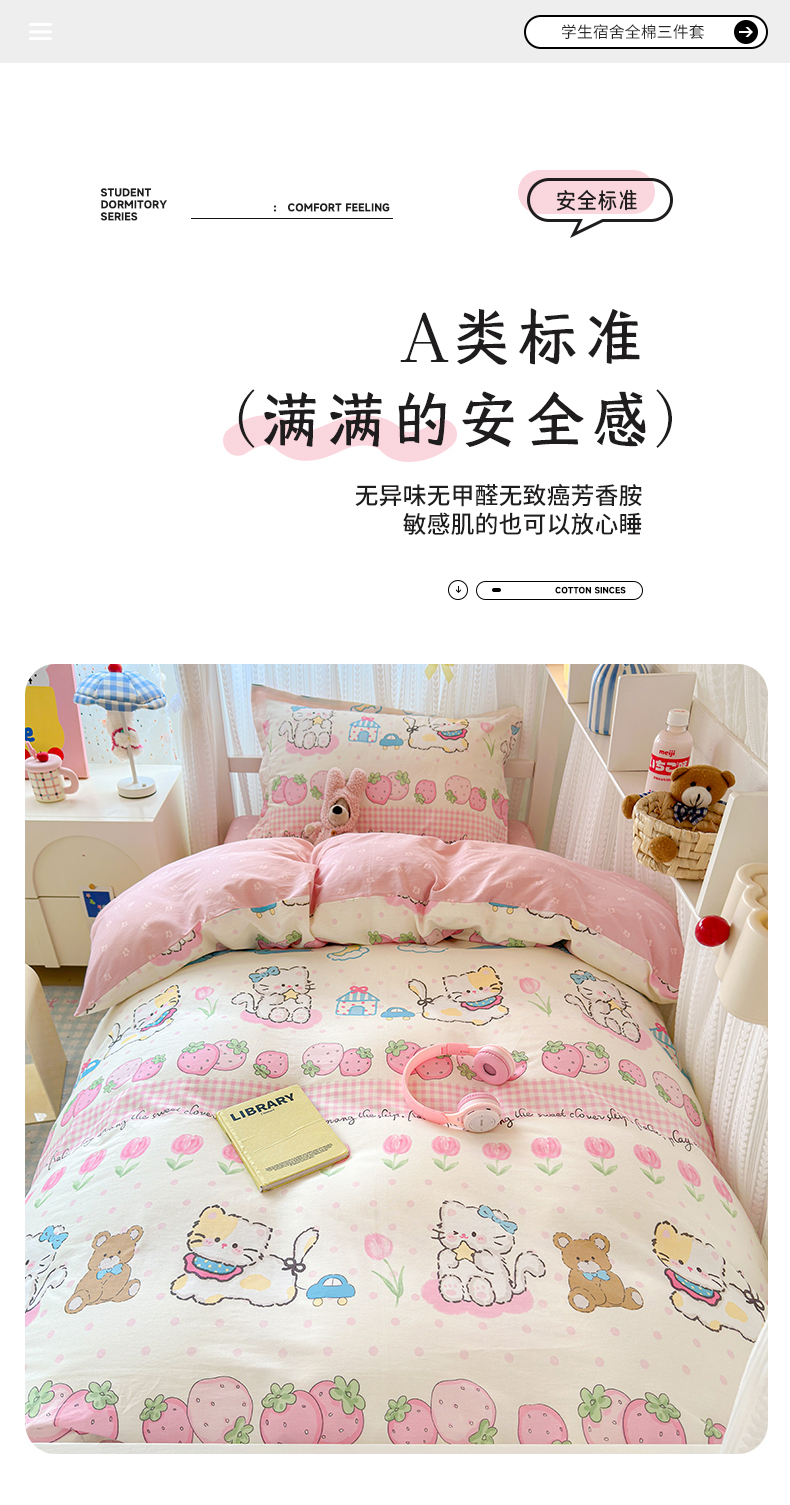 当前位置: 91家纺网 > 商品网购 > 床品套件 > 三件套 > 拾物记 2025新款A类全棉纯棉棉印花学生宿舍三件套上下铺三件套-第二批 叮当奶猫