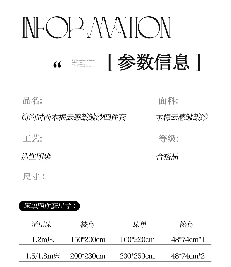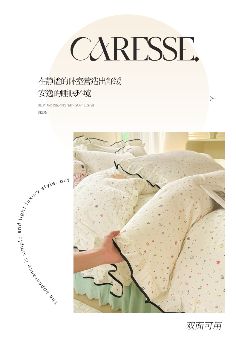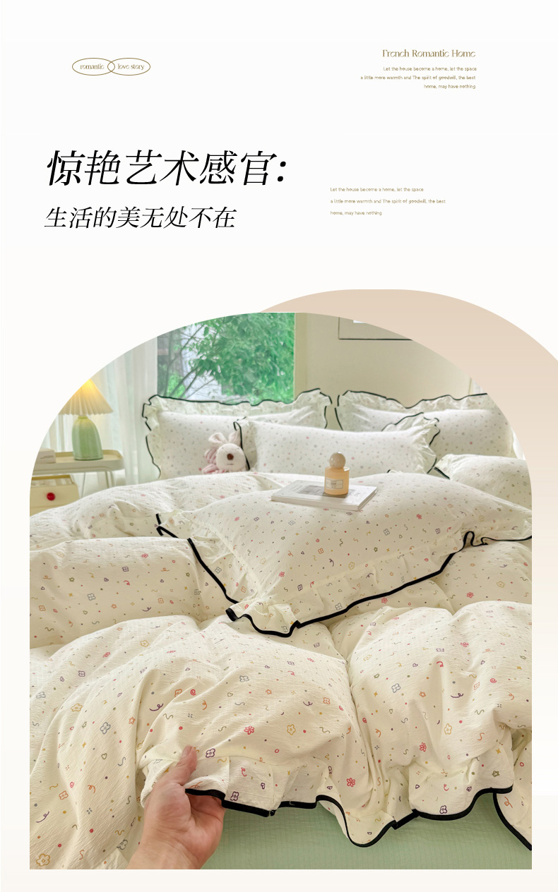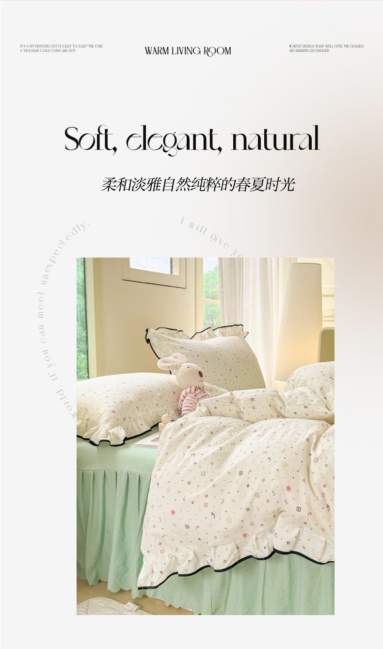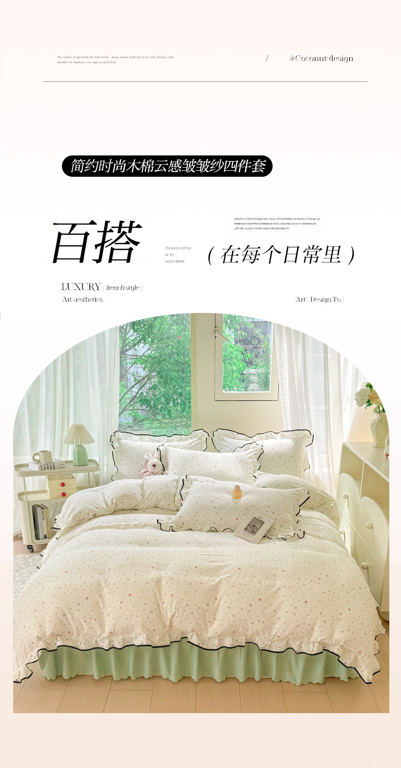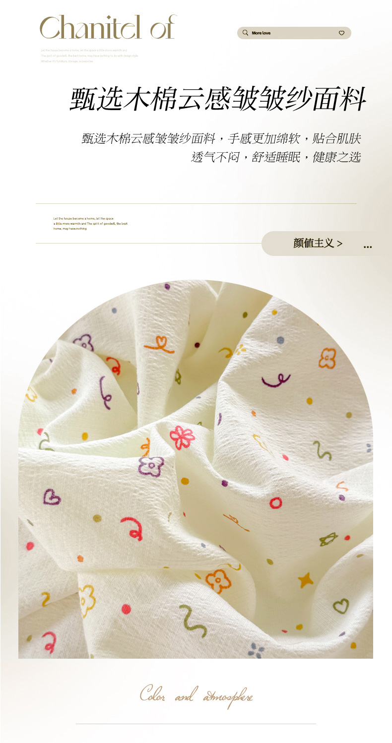 当前位置: 91家纺网 > 商品网购 > 床品套件 > 四件套 > 双层纱四件套 > 上尚居 2025新款简约时尚木棉云感皱皱纱四件套 小确幸