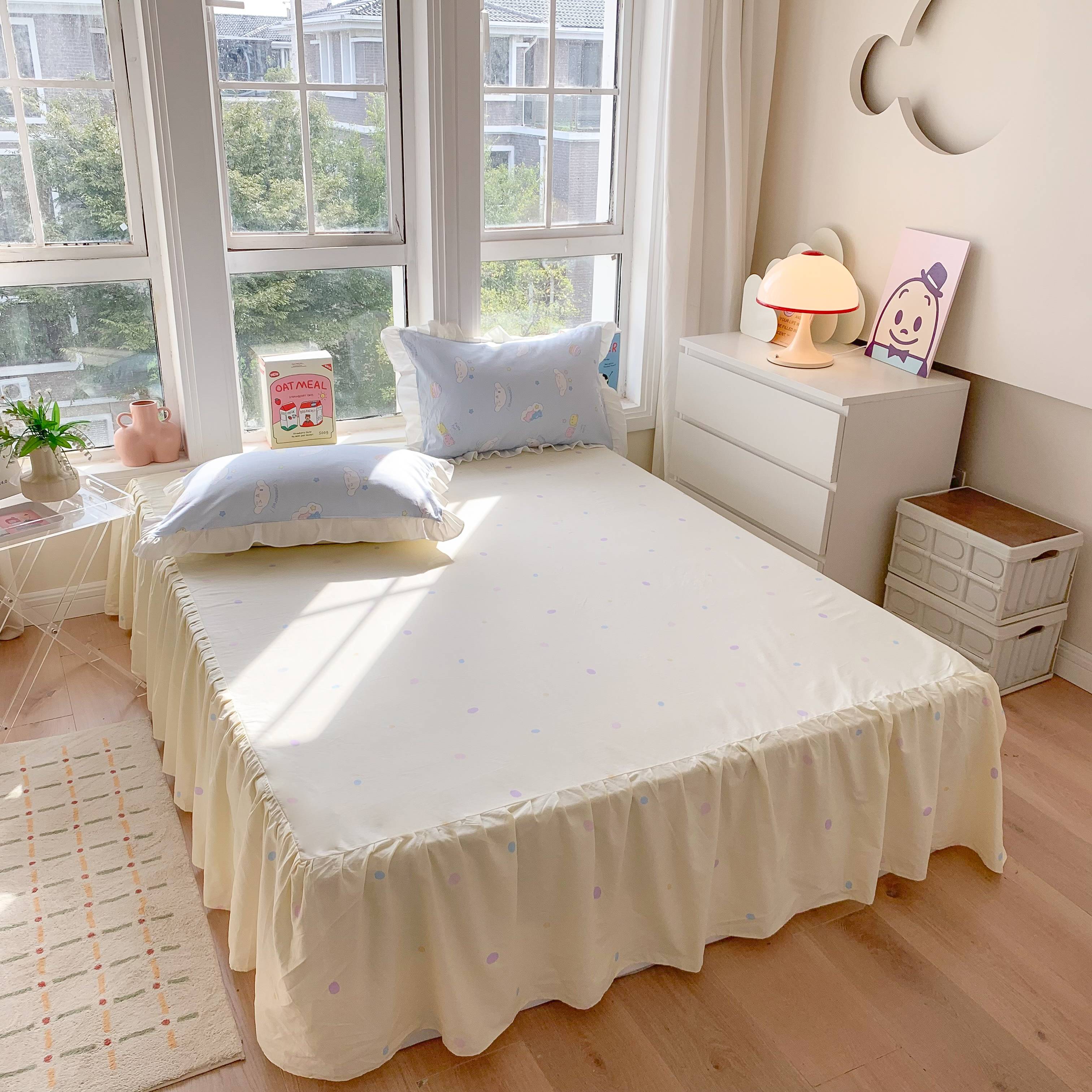 玉元坊 2025春夏新款单品纯色床裙单床裙床裙单件 小萌兔-粉玉