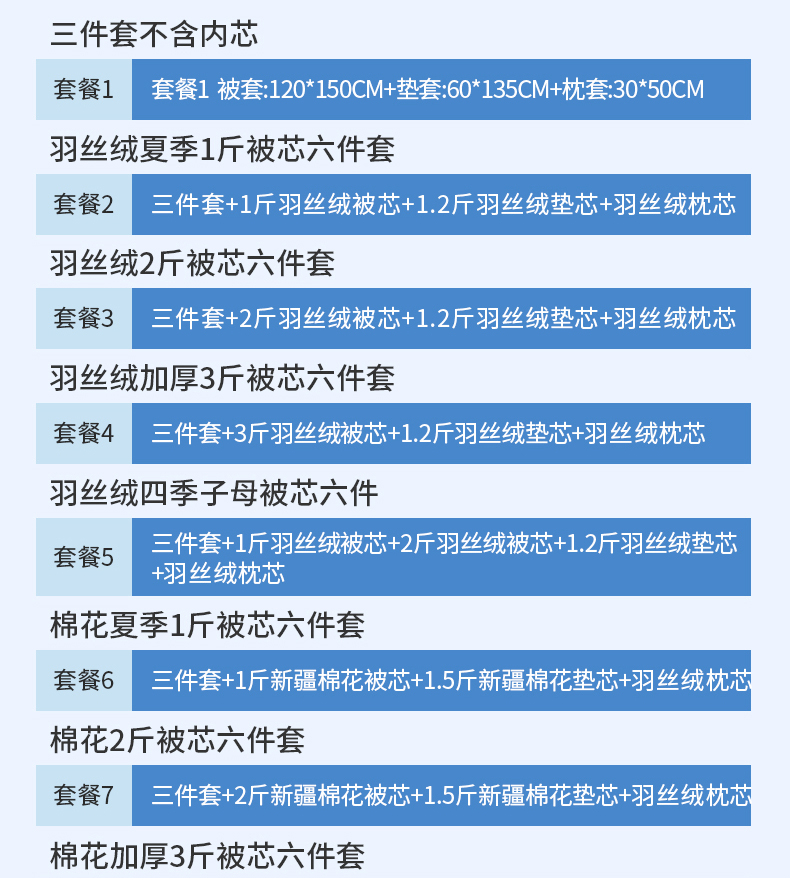 1+2丝绵双胆子母七件套 | ¥132.00 |