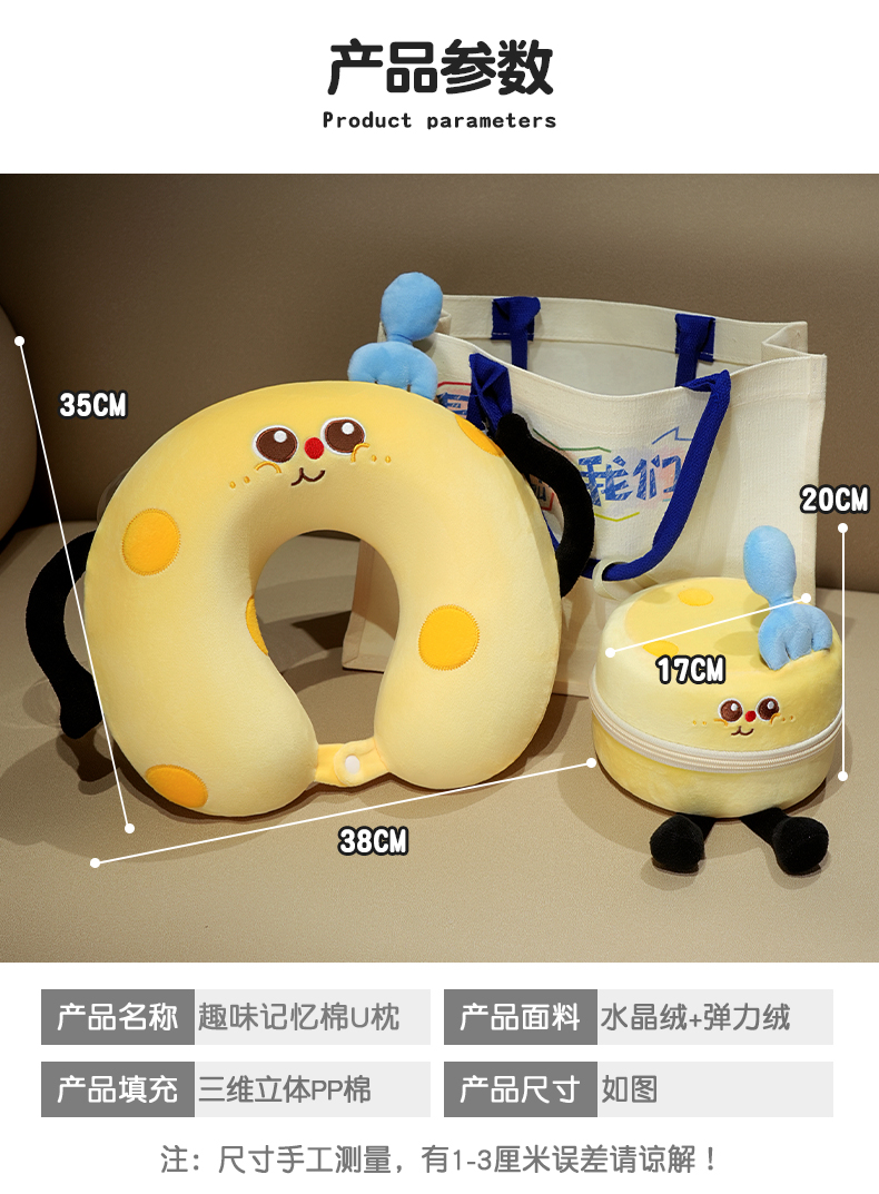当前位置: 91家纺网 > 商品网购 > 枕头/枕芯/保健枕/颈椎枕 > U型枕 > 仟亿莱 2025春夏新款美食系列记忆棉U枕套盒 套盒U枕面包 35X38cmU枕/只