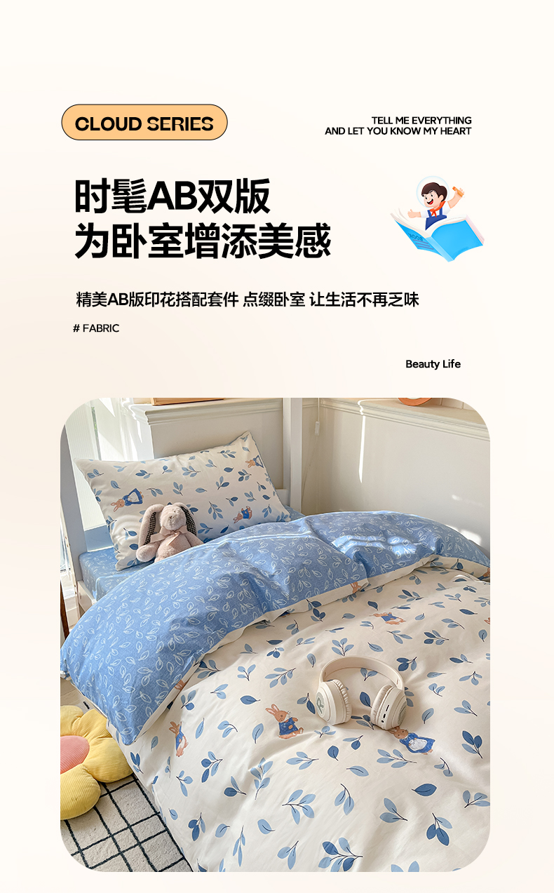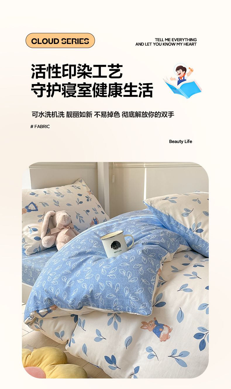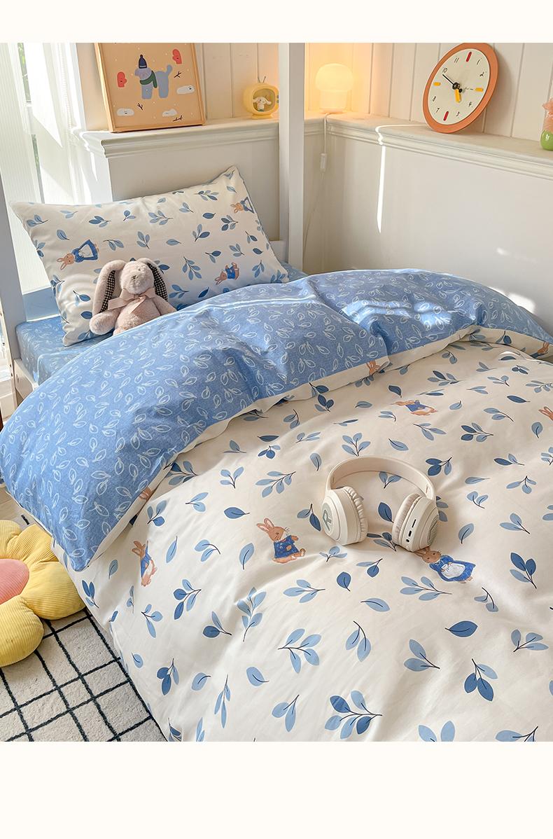 当前位置: 91家纺网 > 商品网购 > 床品套件 > 三件套 > 雅居纺家纺 2025新款全棉纯棉印花系列学生宿舍三四件套上下铺三件套 萌萌兔