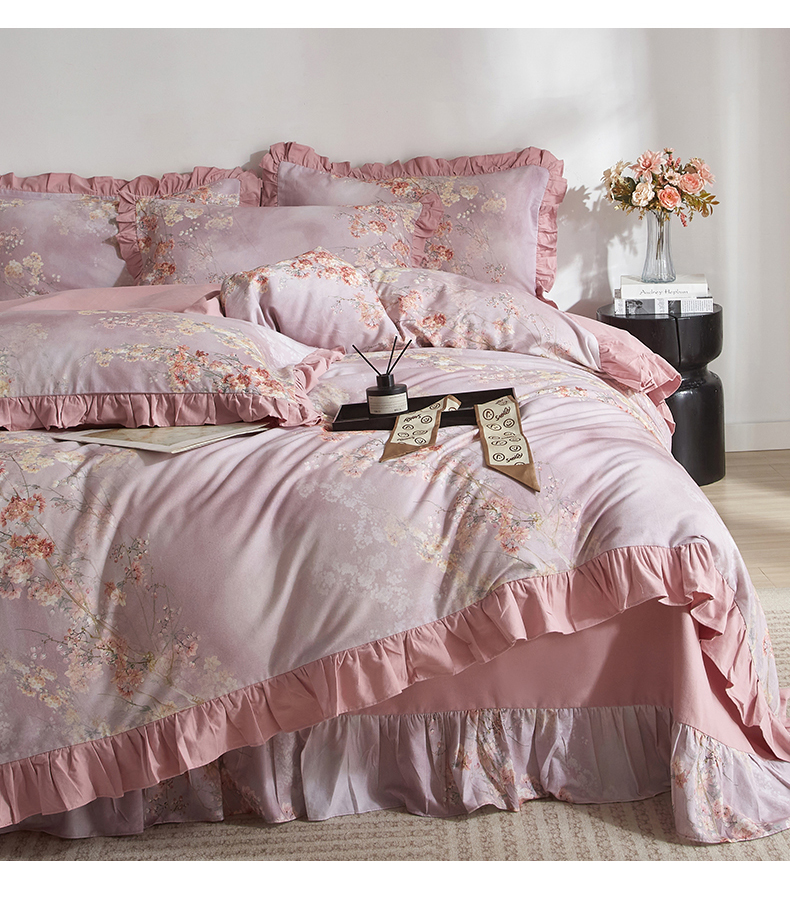 (总)金纱玉纺家纺 2025新款古法水洗花边床裙床单四件套,春熙,希露-灰,希露-紫豆沙,仙韵-黄,仙韵-绿