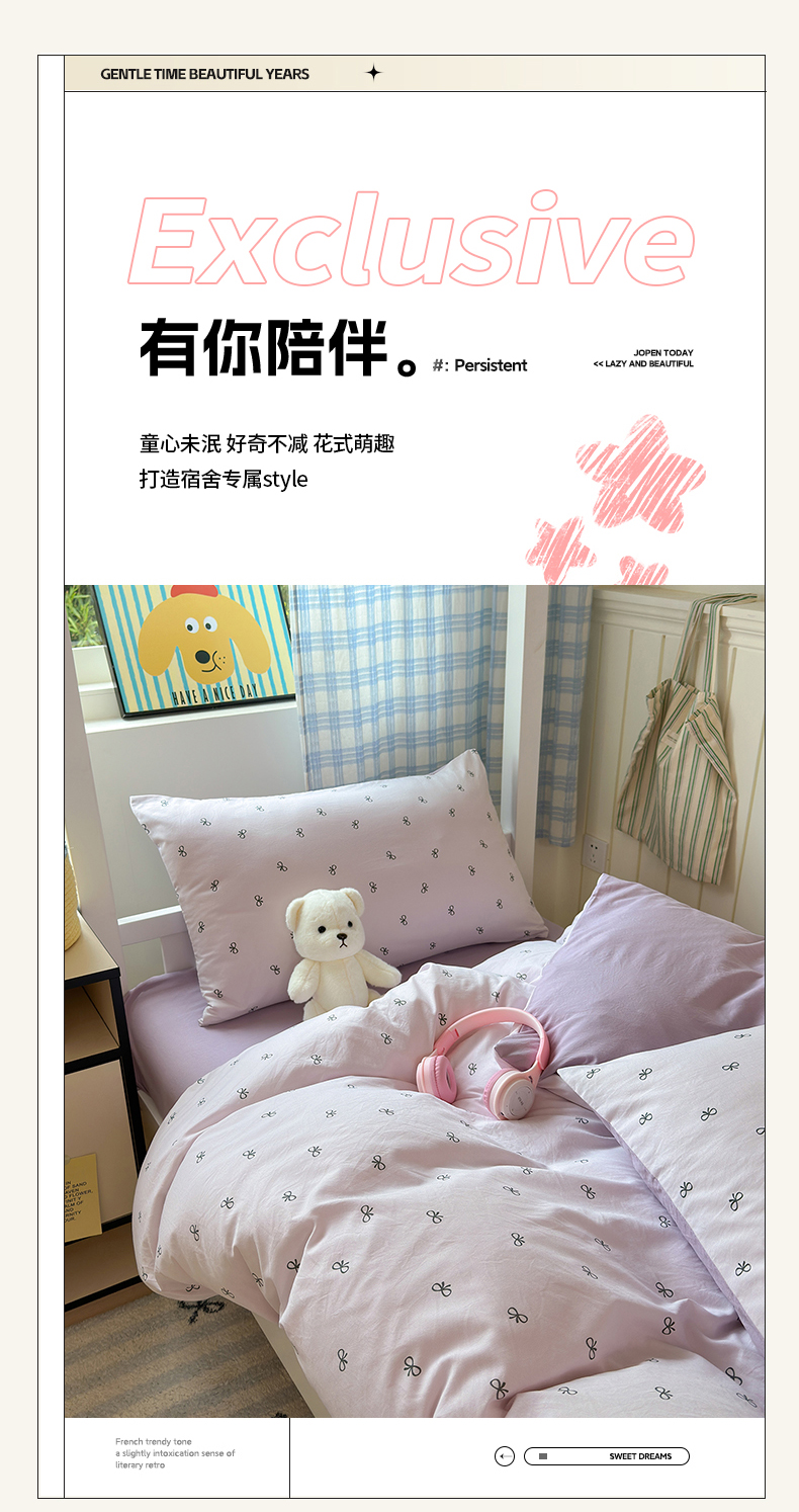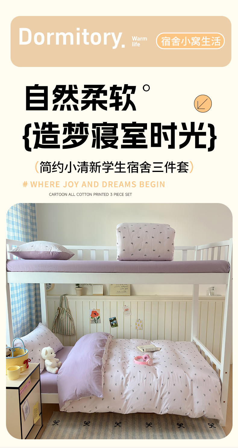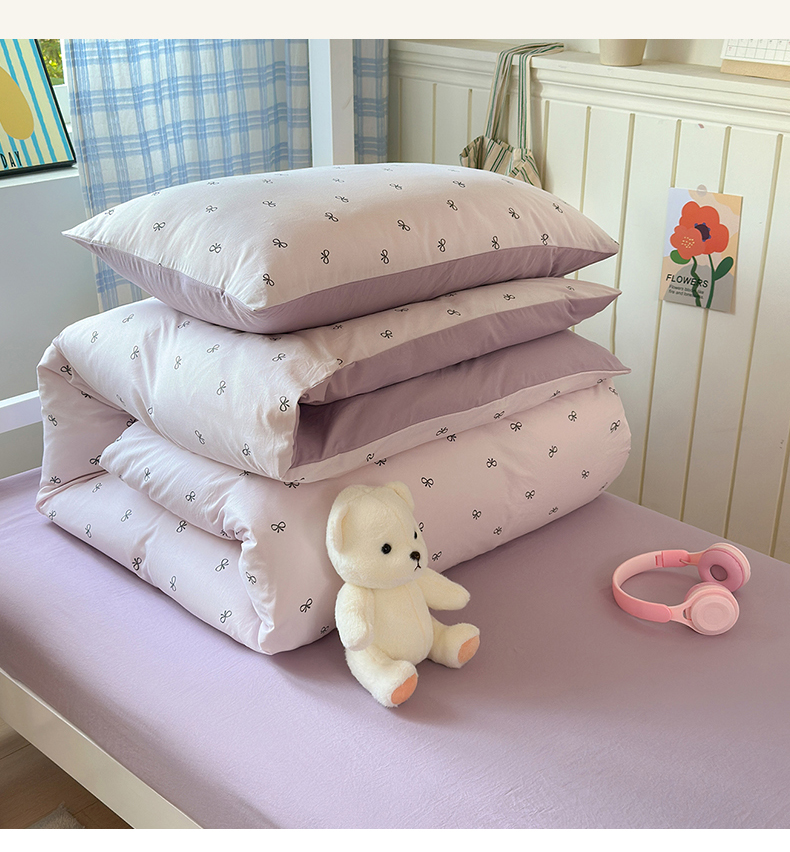 当前位置: 91家纺网 > 商品网购 > 床品套件 > 三件套 > 沐芷 2025 开学季学生宿舍三件套 水洗棉四件套被套床单 紫色蝴蝶结