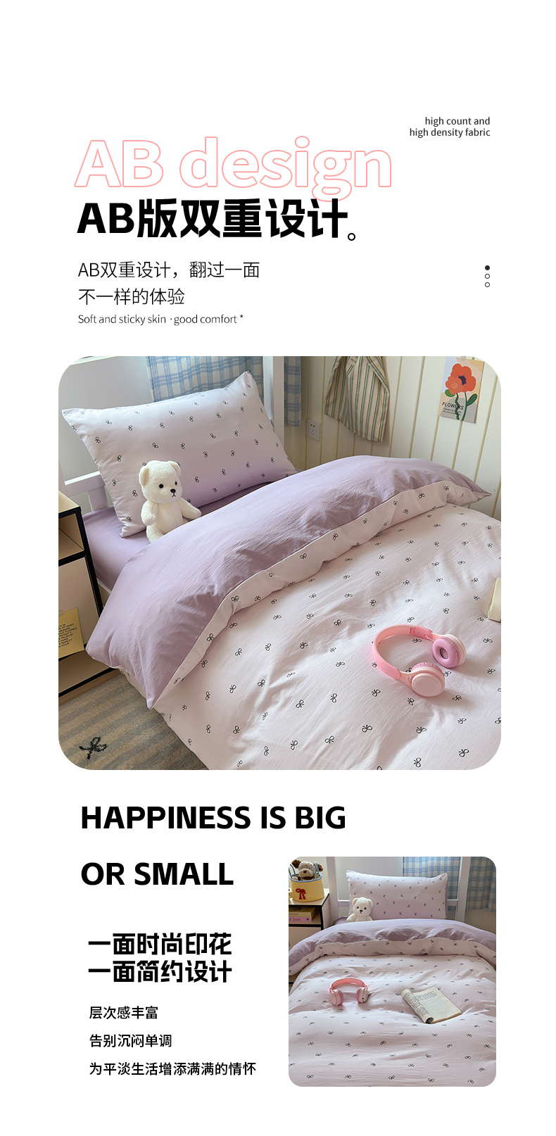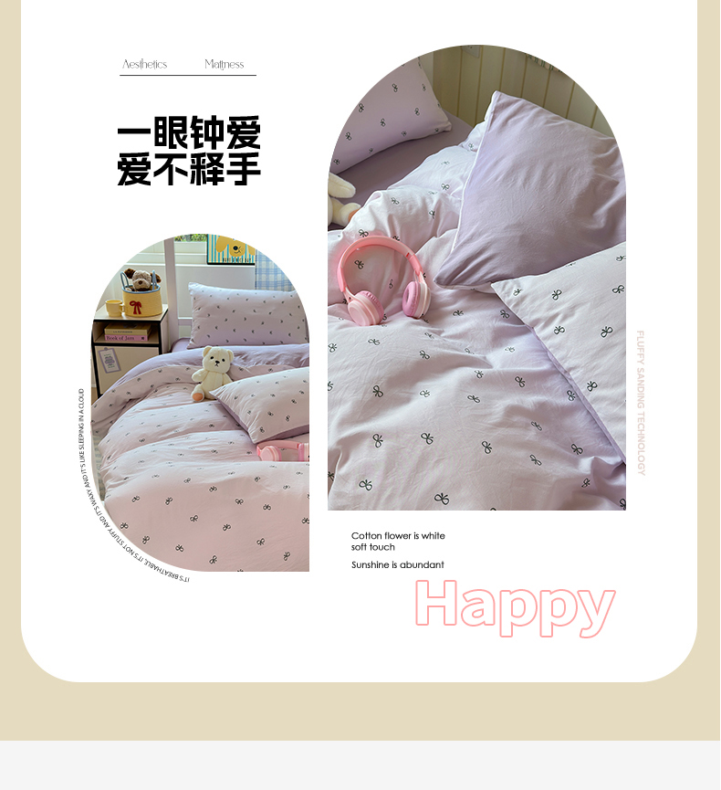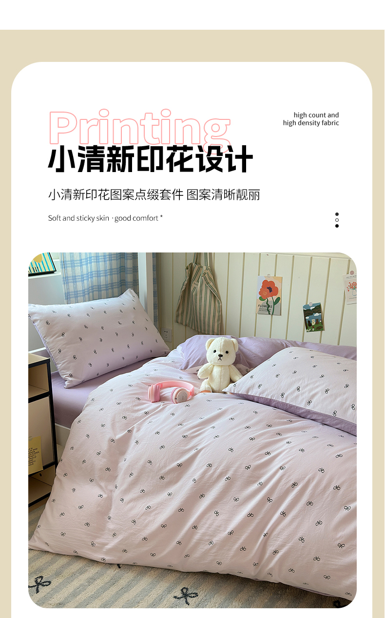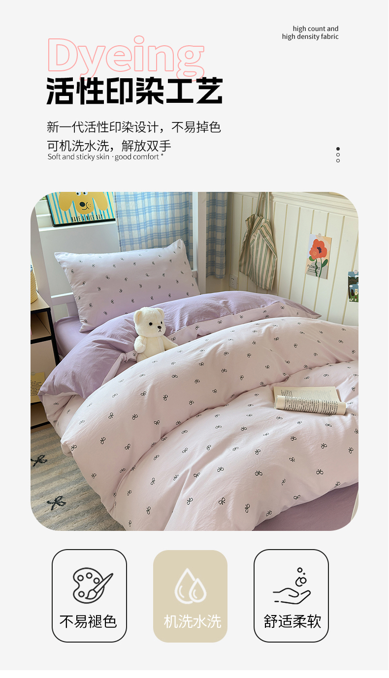 当前位置: 91家纺网 > 商品网购 > 床品套件 > 三件套 > 沐芷 2025 开学季学生宿舍三件套 水洗棉四件套被套床单 紫色蝴蝶结