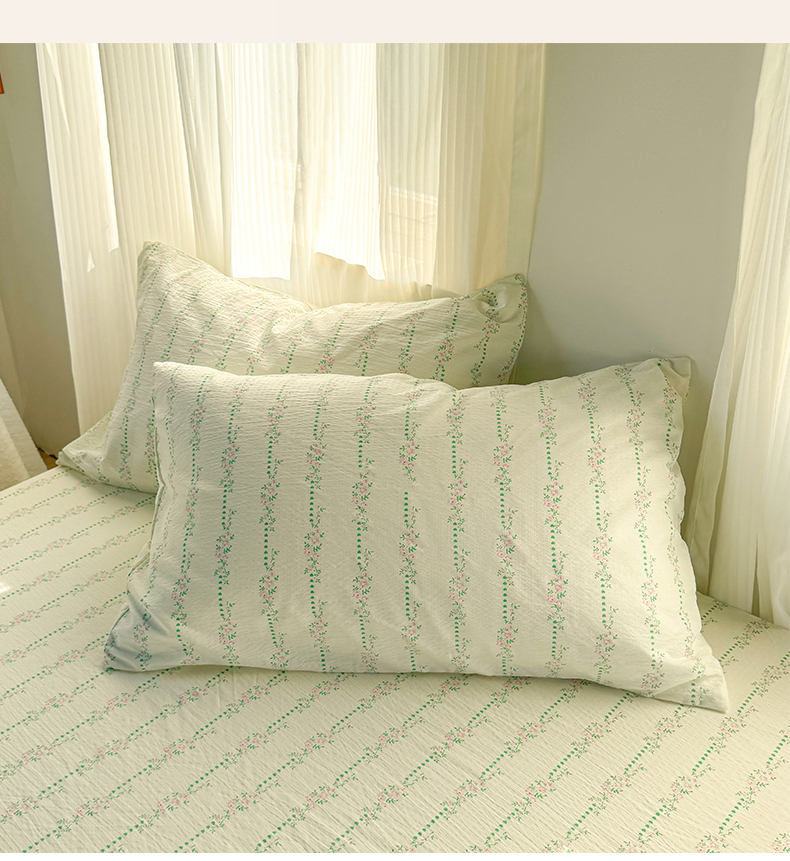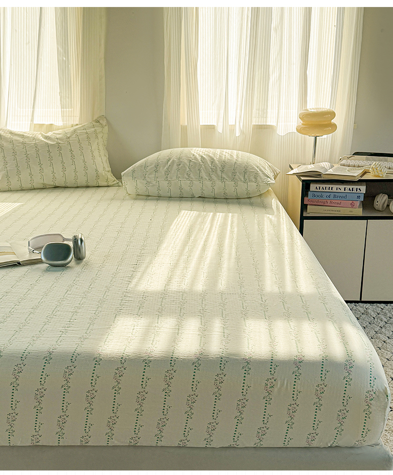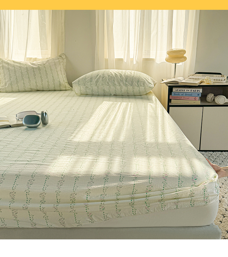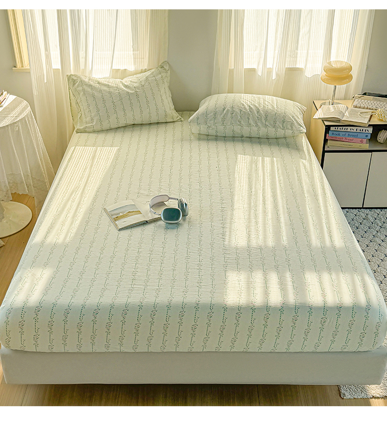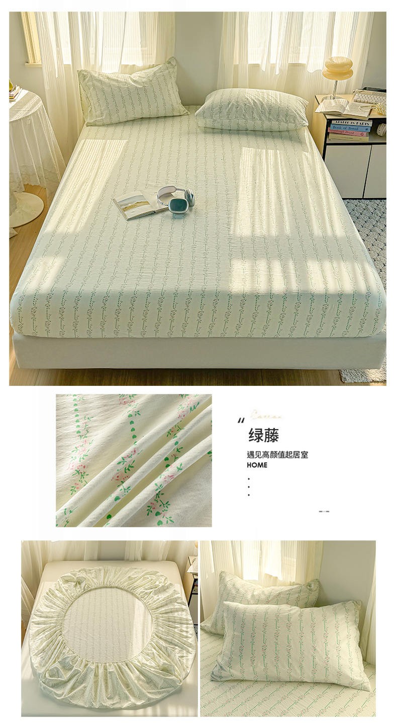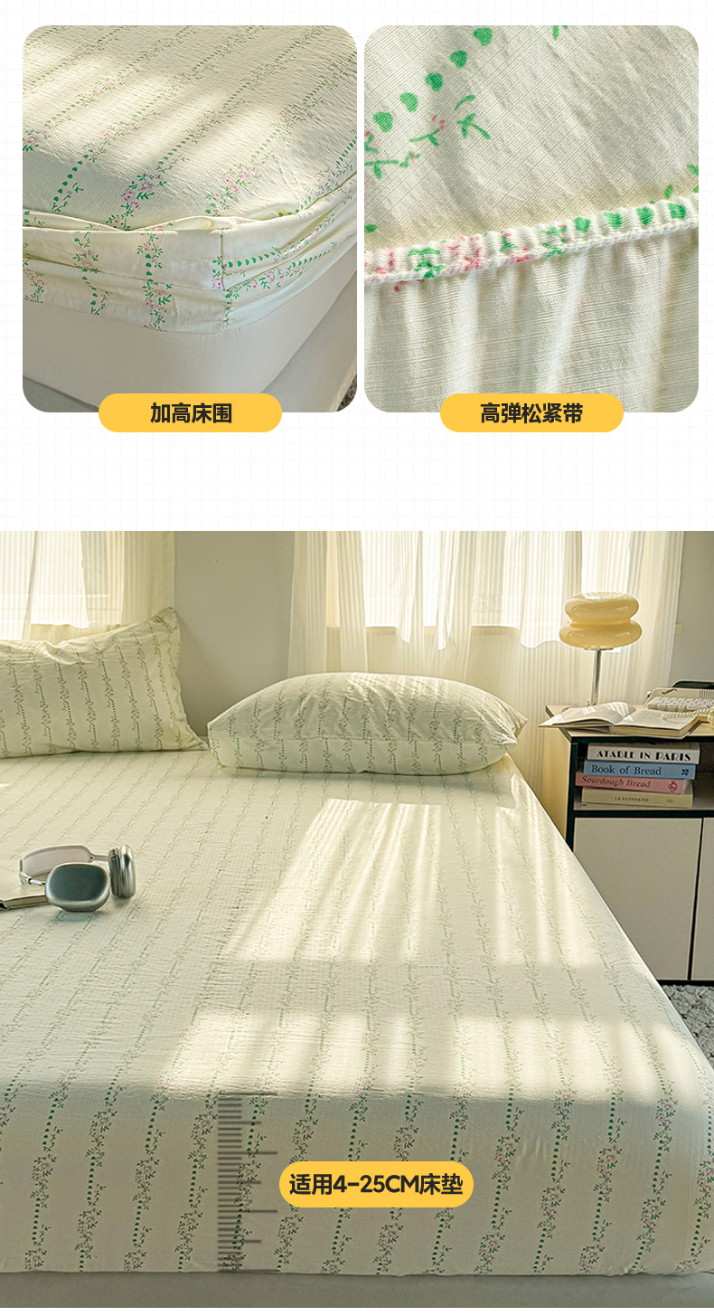 多品家纺 2025新款超柔云感双层纱水洗棉单品床笠 绿藤
