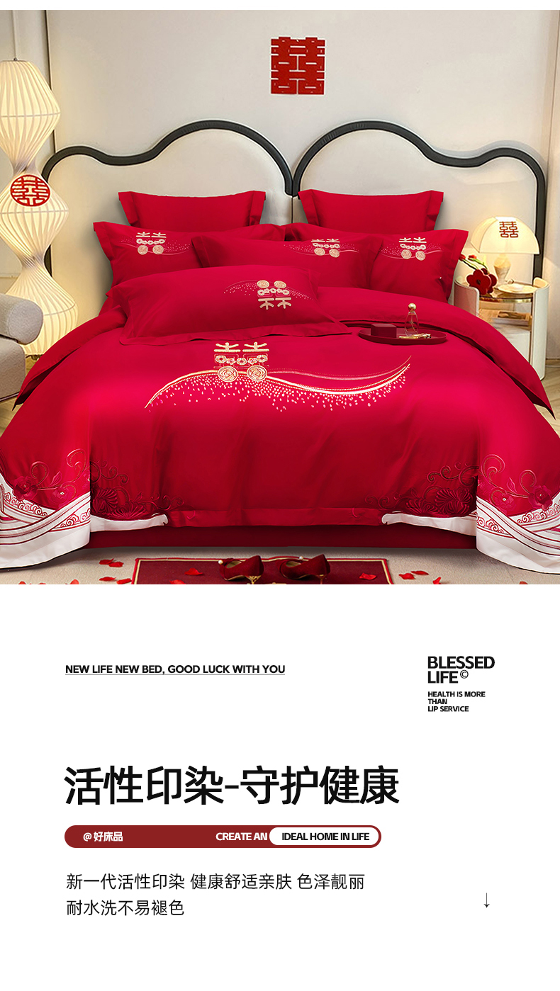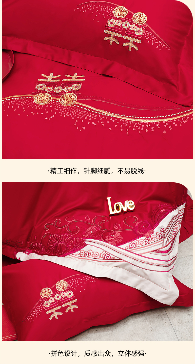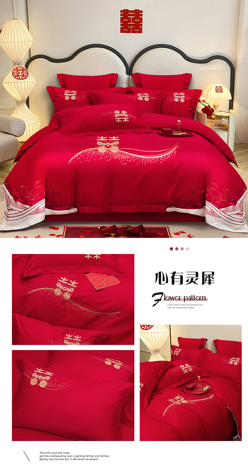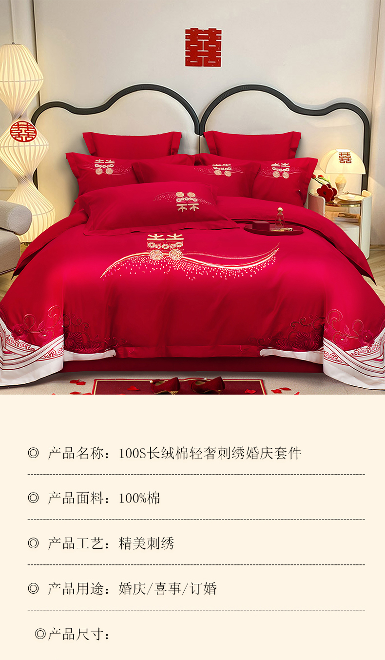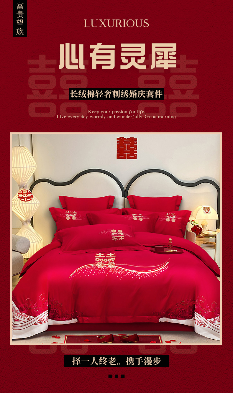 当前位置: 91家纺网 > 商品网购 > 床品套件 > 四件套 > 婚庆四件套 > 千禧家纺 2025新款双面长绒棉轻奢工艺款刺绣婚庆套件(贵妃枕非图上所展示款)心有灵犀