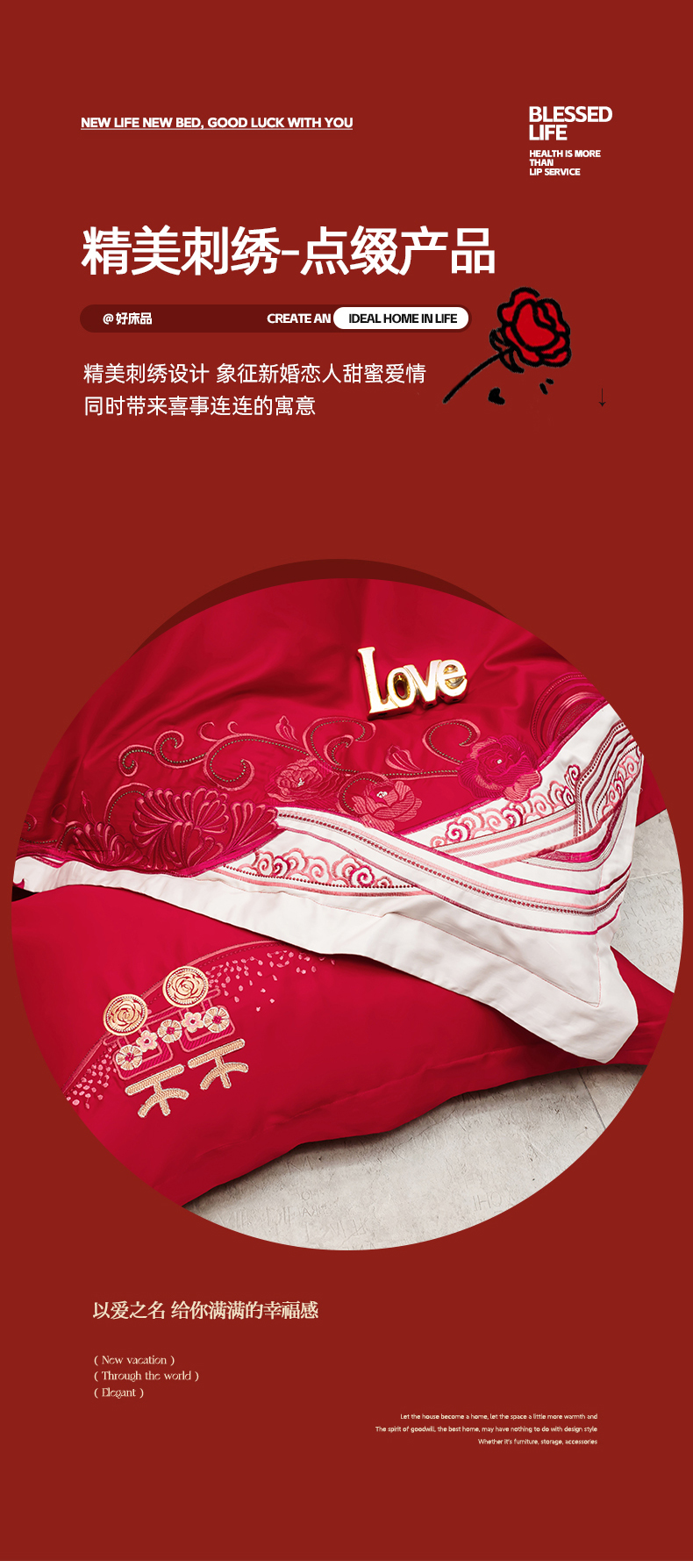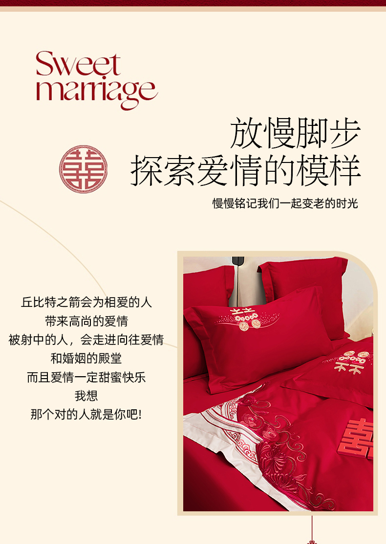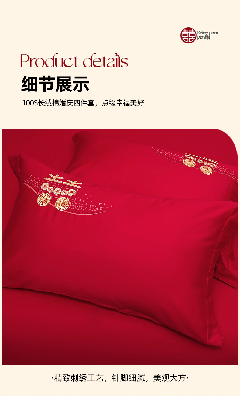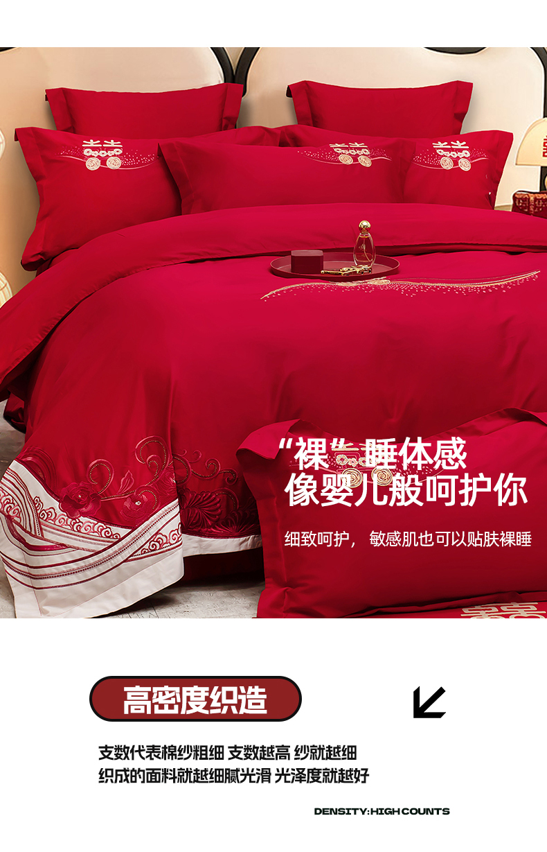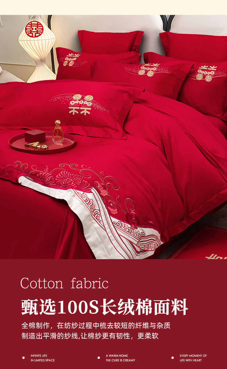 当前位置: 91家纺网 > 商品网购 > 床品套件 > 四件套 > 婚庆四件套 > 千禧家纺 2025新款双面长绒棉轻奢工艺款刺绣婚庆套件(贵妃枕非图上所展示款)心有灵犀