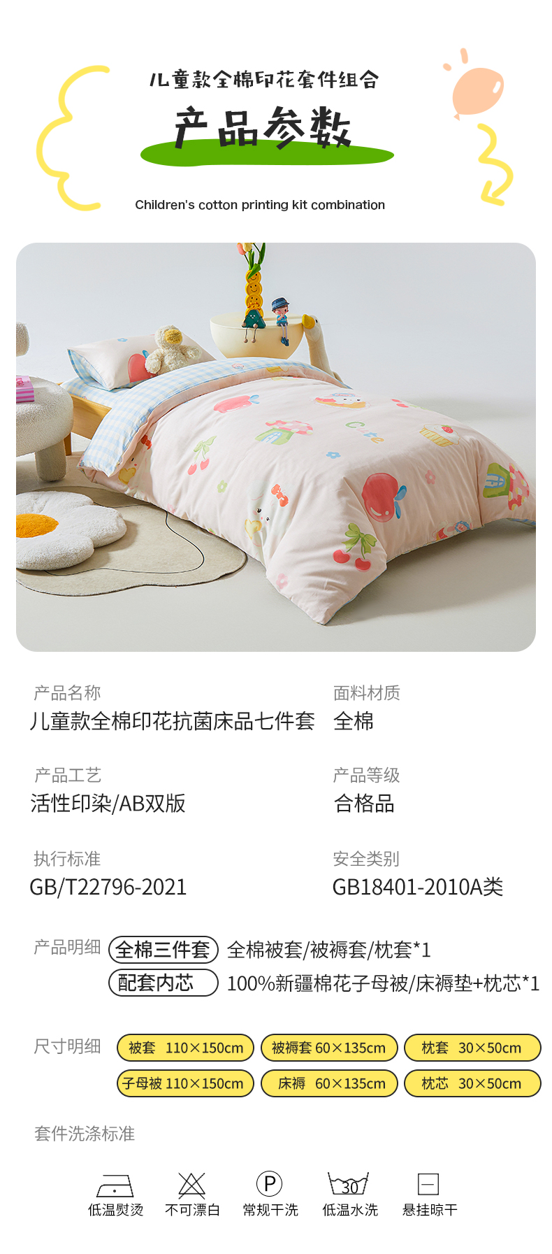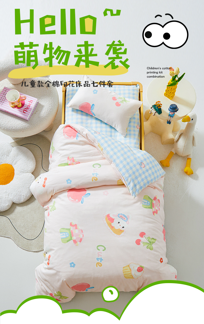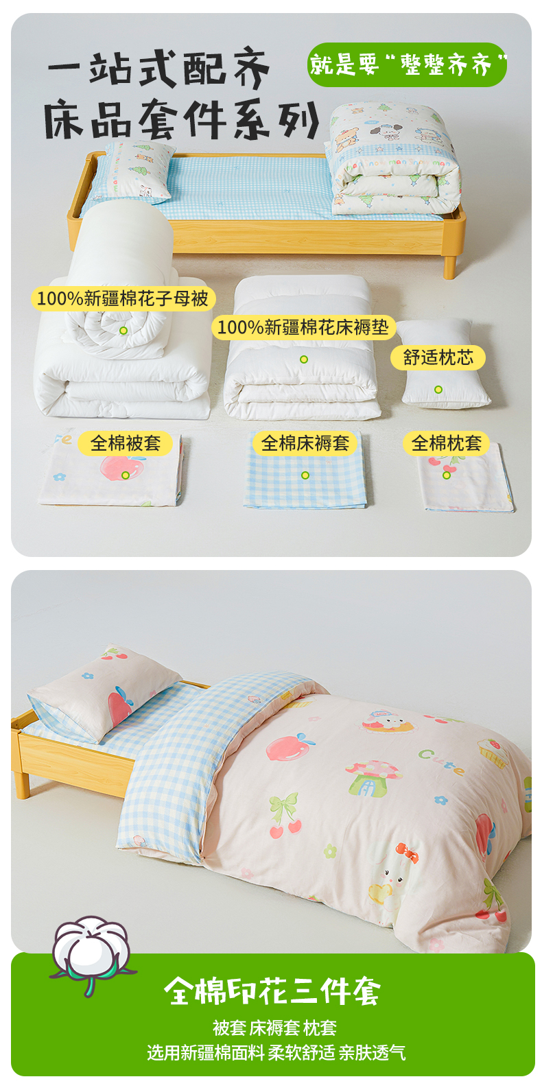 当前位置: 91家纺网 > 商品网购 > 床品套件 > 六件套 > 西域种棉人·千百笠 2025新款100%全棉幼儿园被子三件套被套纯棉儿童六件套宝宝入园专用被套被褥含芯七件套 美味甜心