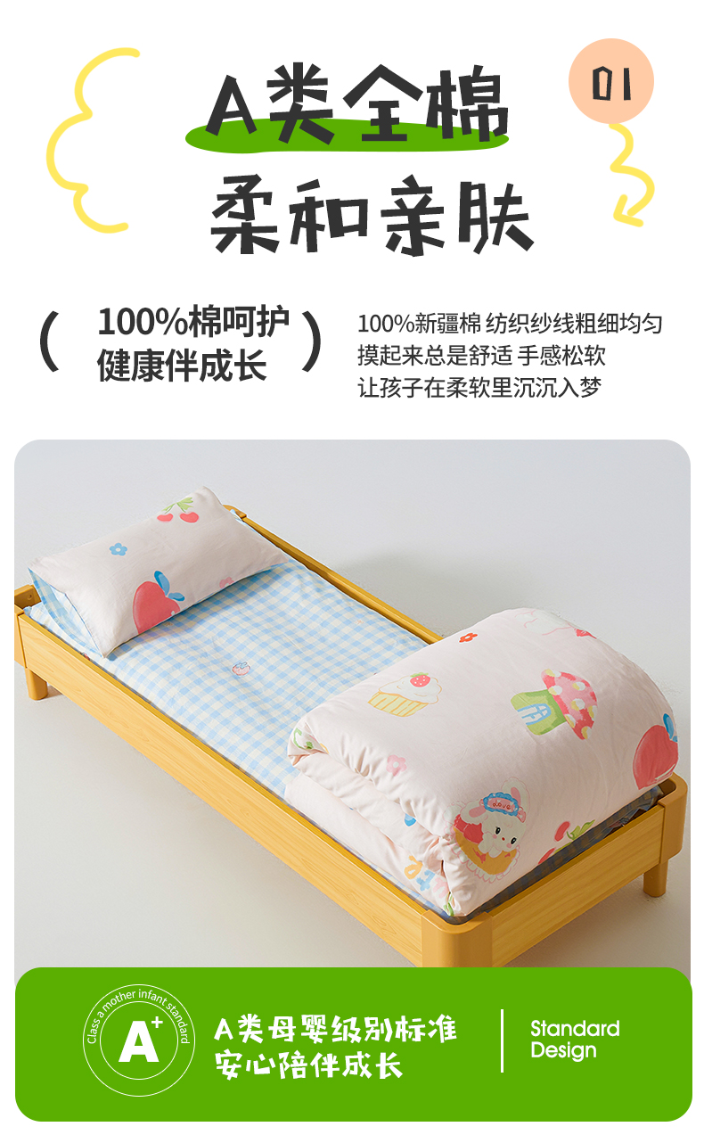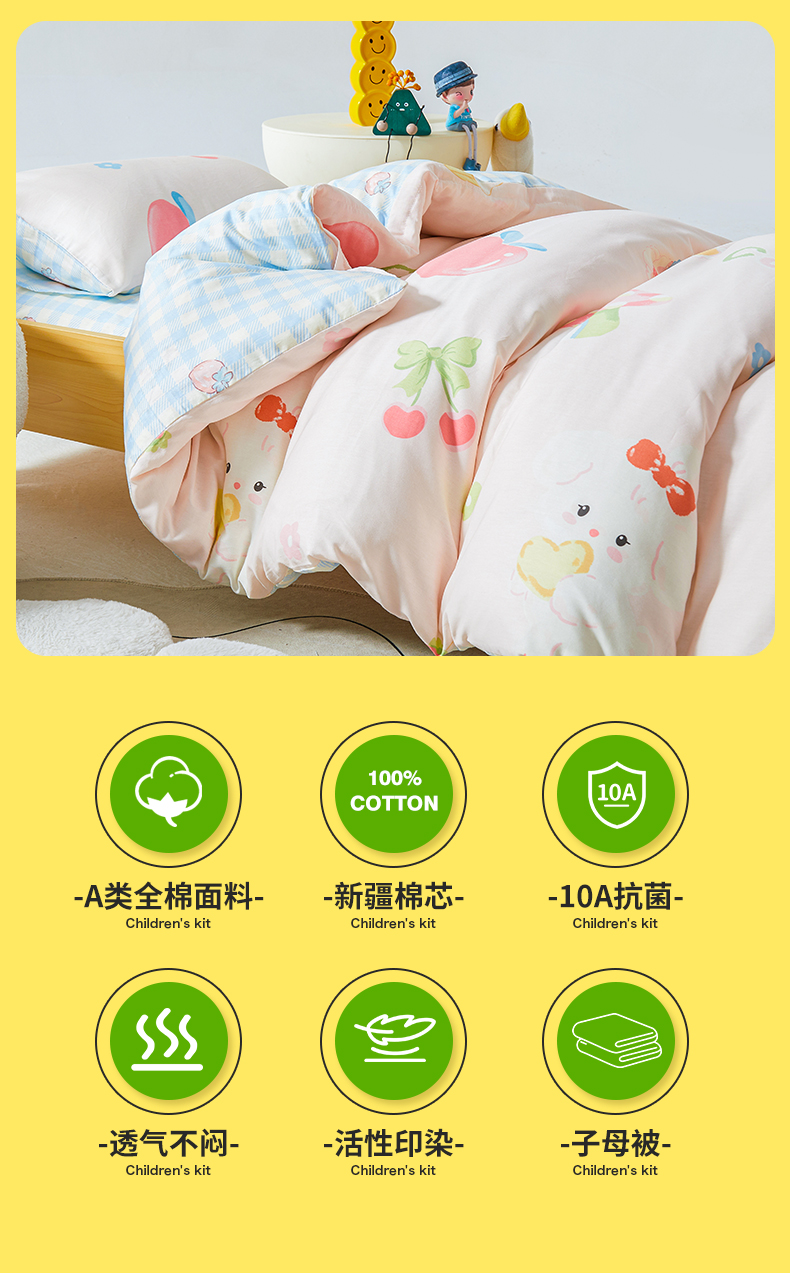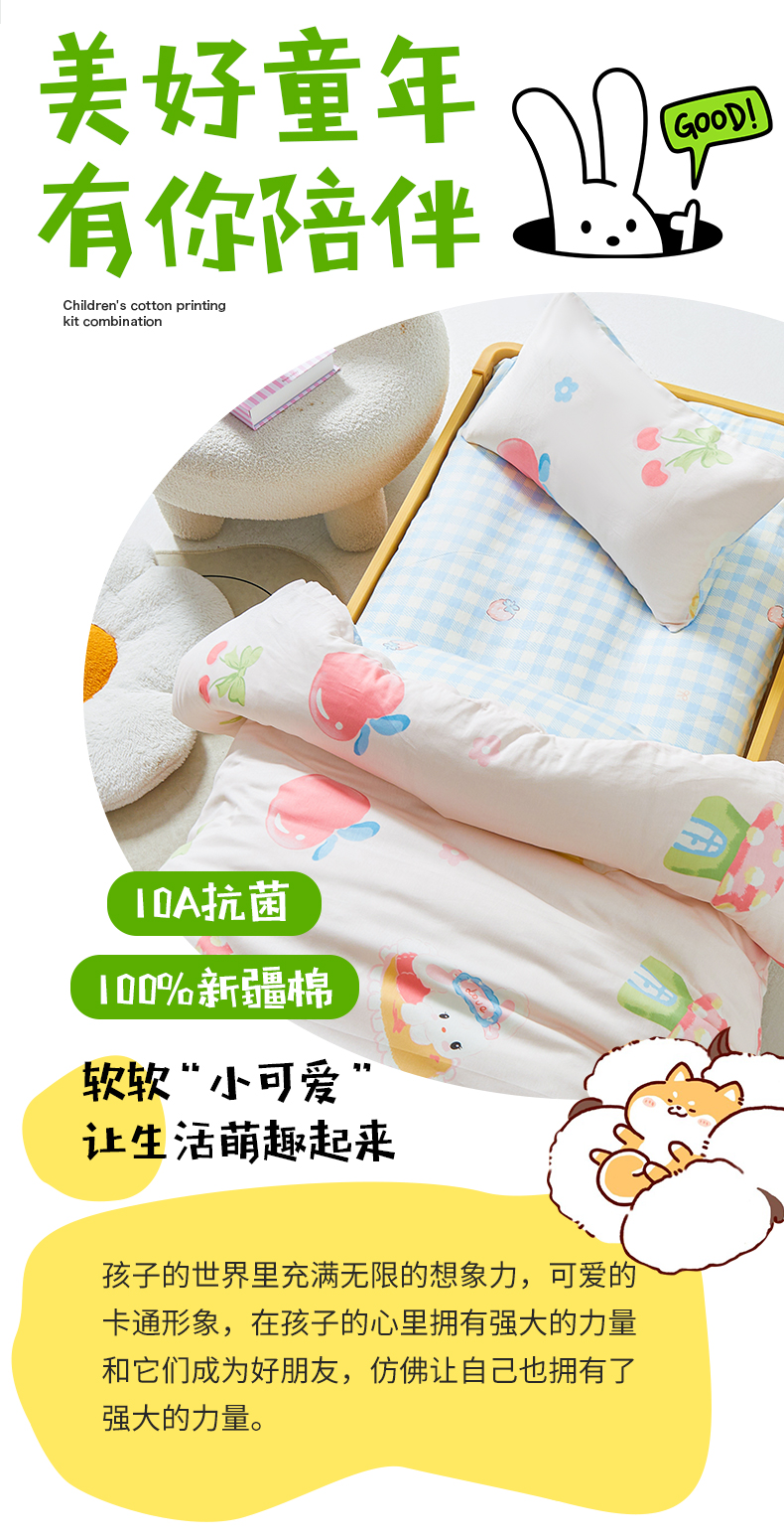 当前位置: 91家纺网 > 商品网购 > 床品套件 > 六件套 > 西域种棉人·千百笠 2025新款100%全棉幼儿园被子三件套被套纯棉儿童六件套宝宝入园专用被套被褥含芯七件套 美味甜心