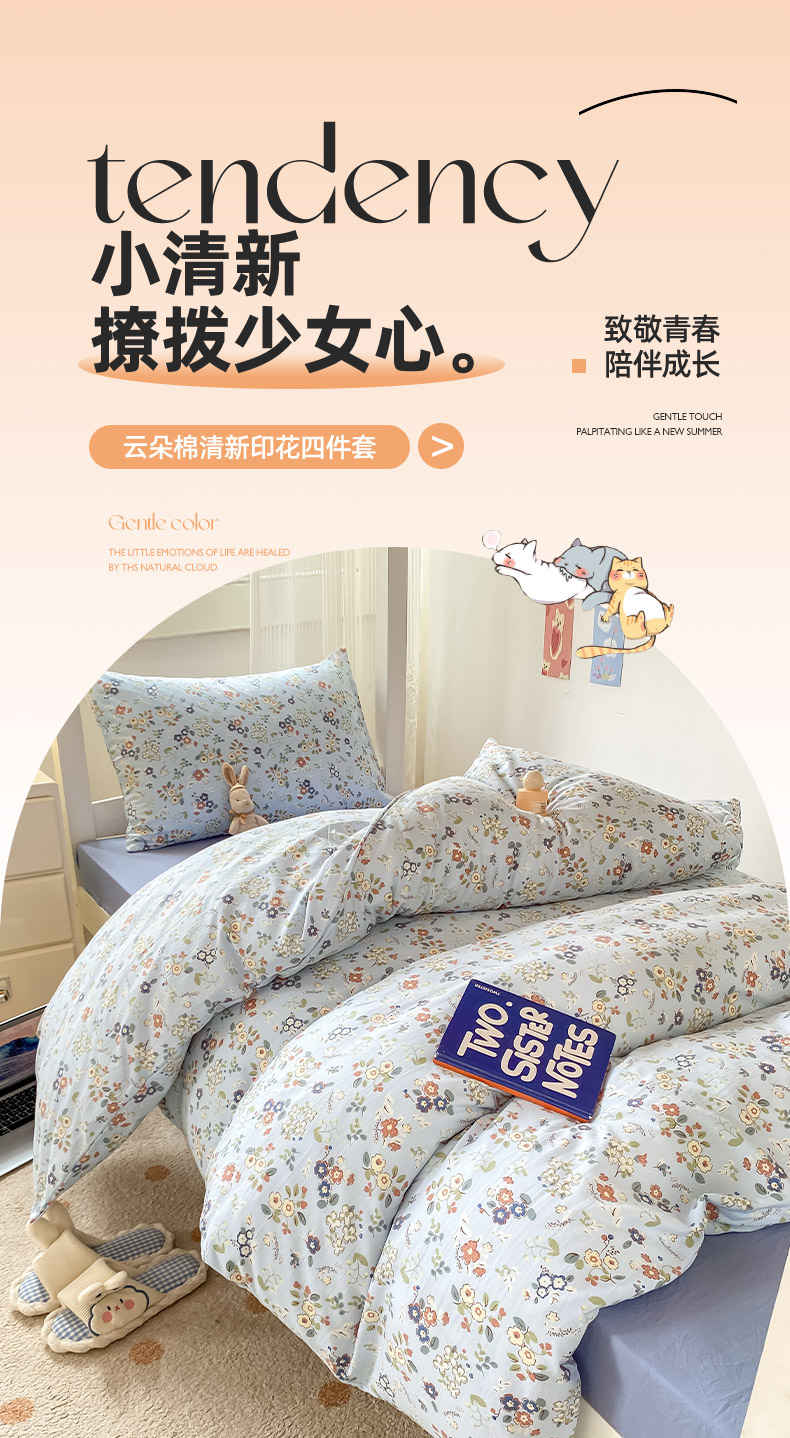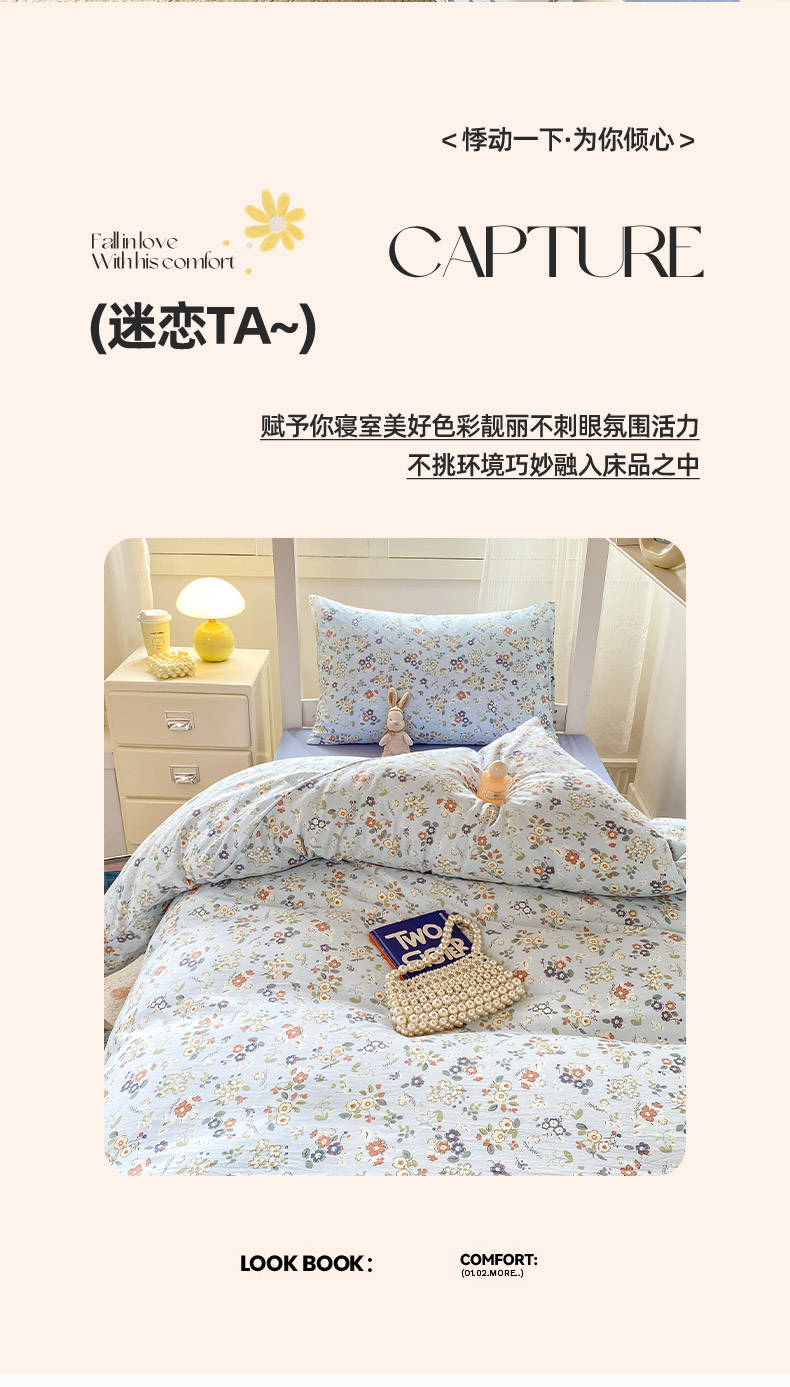 当前位置: 91家纺网 > 商品网购 > 床品套件 > 三件套 > 芷凡家纺 2025新款水洗棉双层纱学生三件套四件套学生宿舍上下铺三件套 南瓜乐园