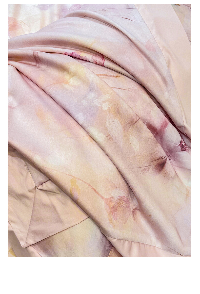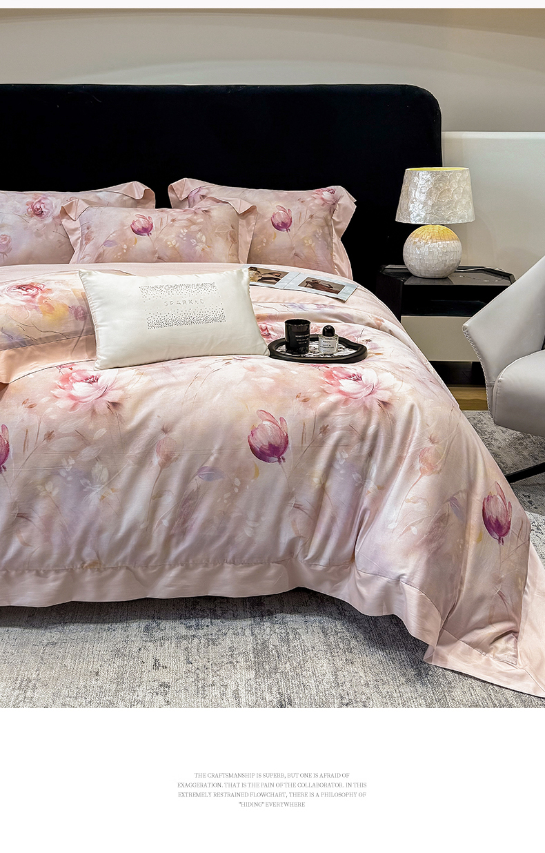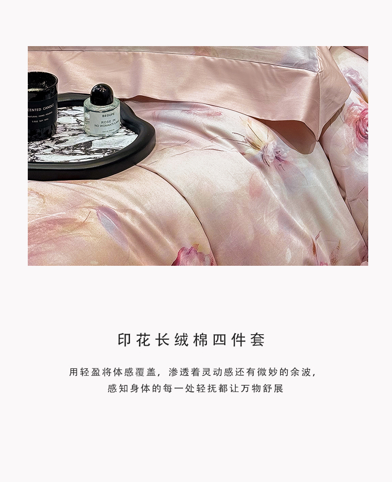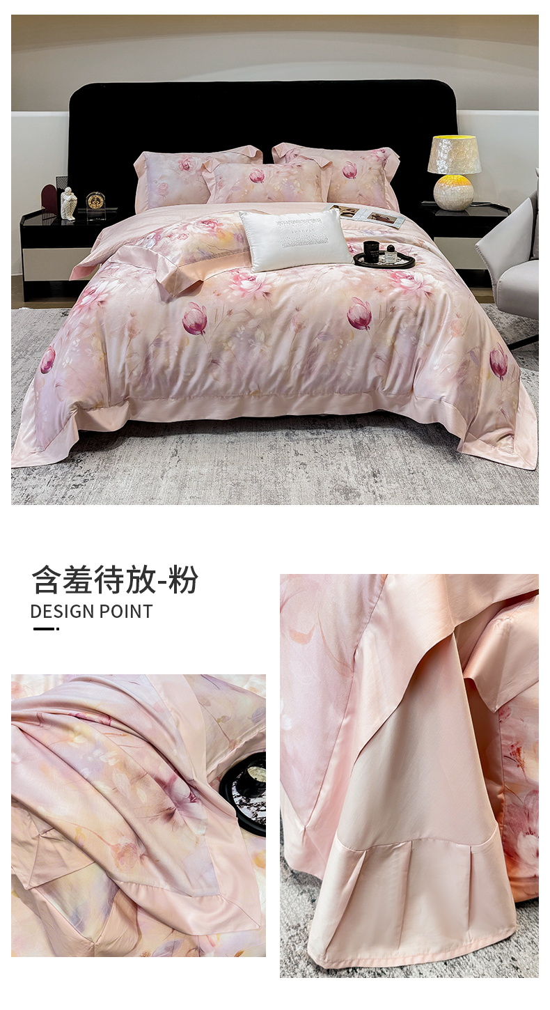 商品名称:绒棉世家 2025新款80S贡缎长绒棉拼角工艺数码印花四件套 花色依人-粉