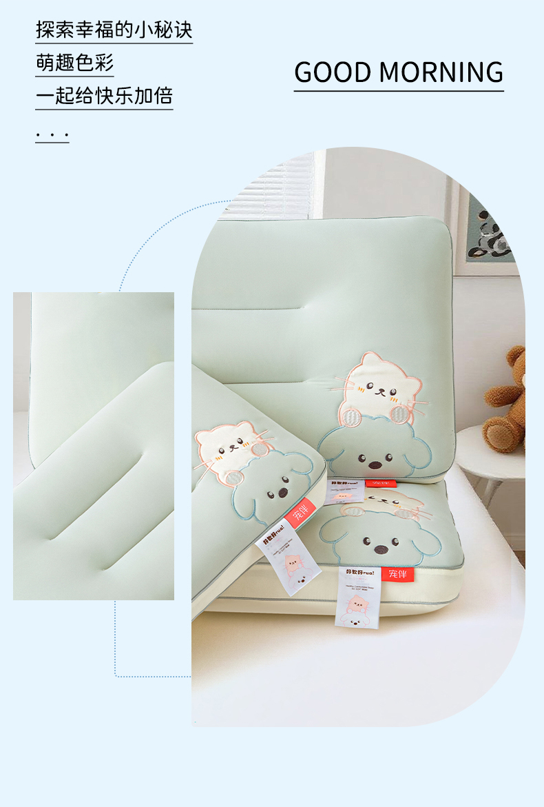 当前位置: 91家纺网 > 商品网购 > 枕头/枕芯/保健枕/颈椎枕 > 普通枕芯 > 织布人 2025新款枕芯A类裸感宠伴卡通幼儿园儿童枕头学生宿舍枕头枕芯 A类宠伴卡通枕-天蓝 40x60cm/只