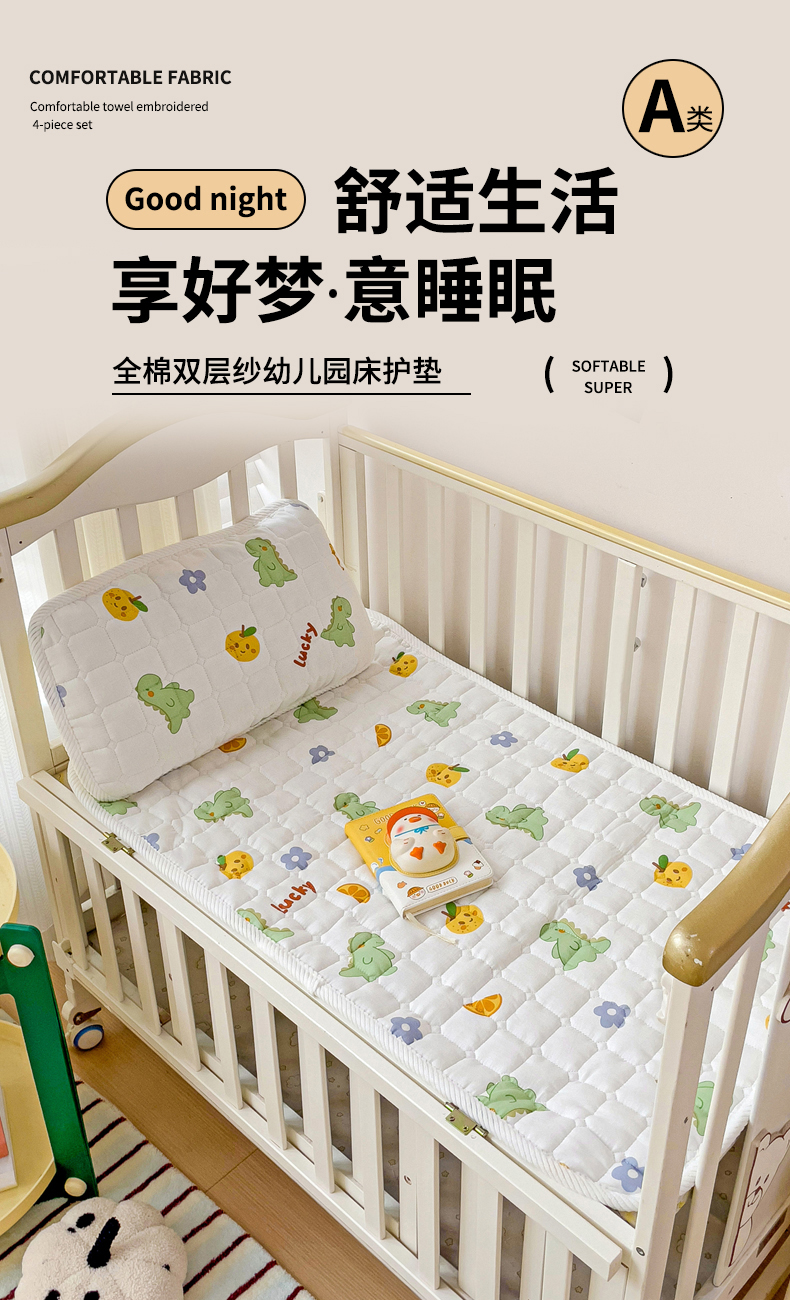 当前位置: 91家纺网 > 商品网购 > 床垫/床褥 > 普通床垫 > 富馨莱 2025年新款双层纱纯棉软床垫幼儿园儿童床垫 小恐龙-绿