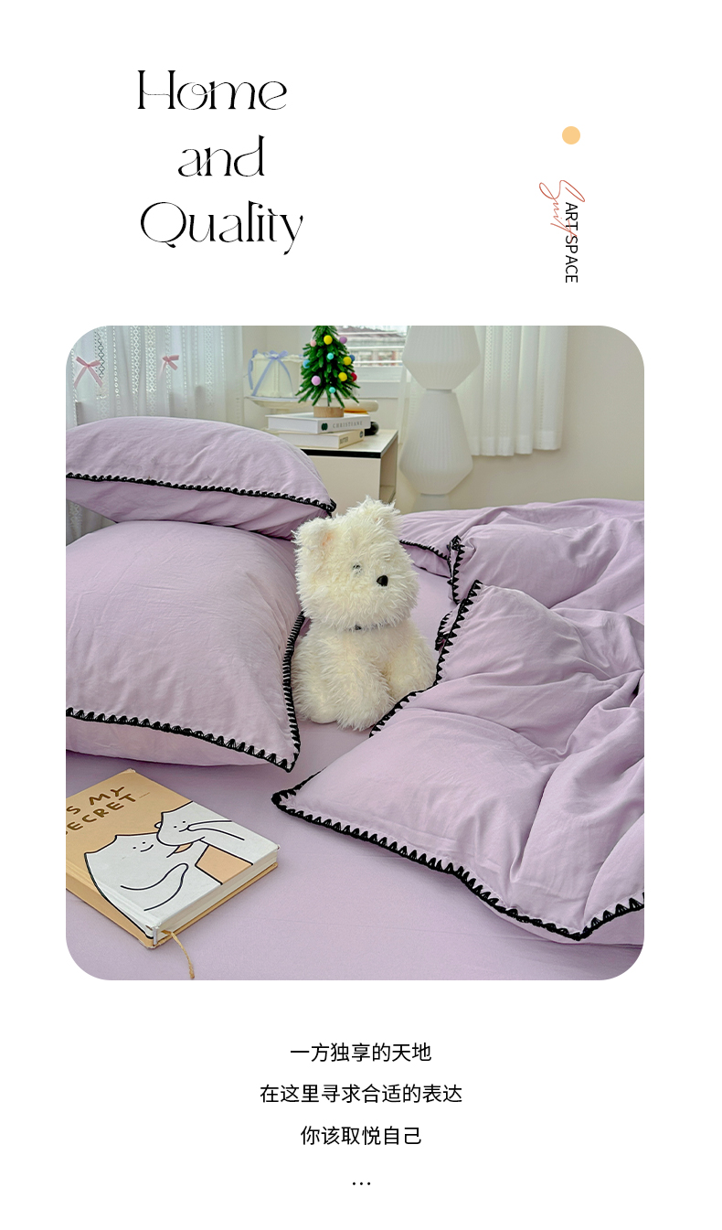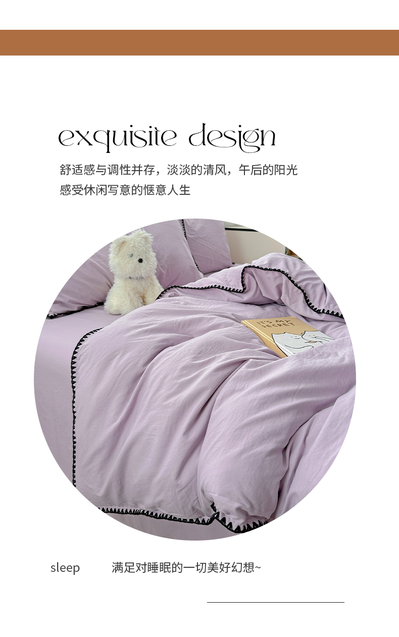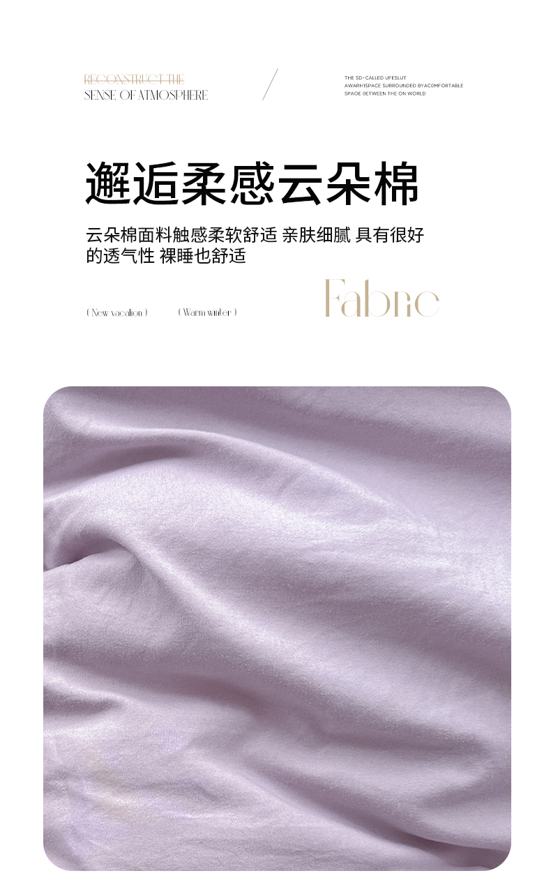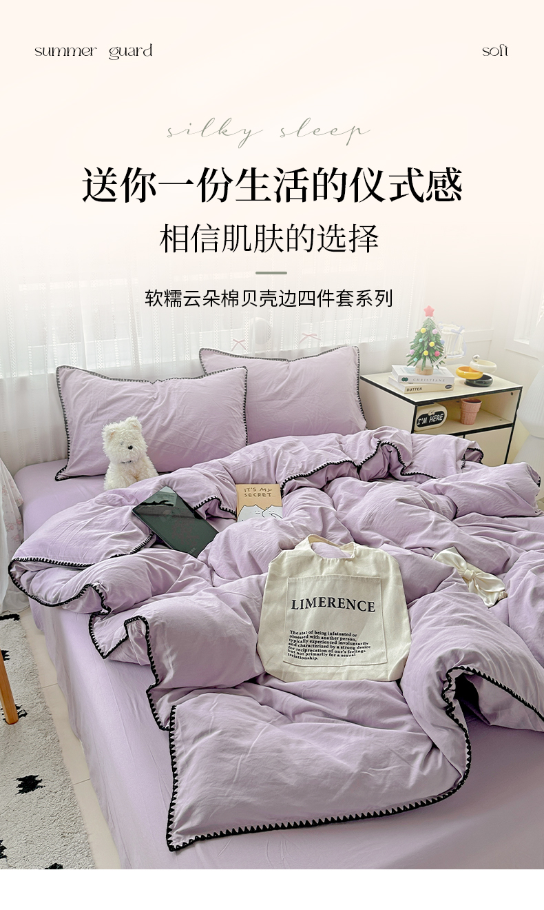 当前位置: 91家纺网 > 商品网购 > 床品套件 > 四件套 > 其它四件套 > 繁花家居 2025新款高克重云朵棉贝壳边系列四件套 绵绵-芋紫
