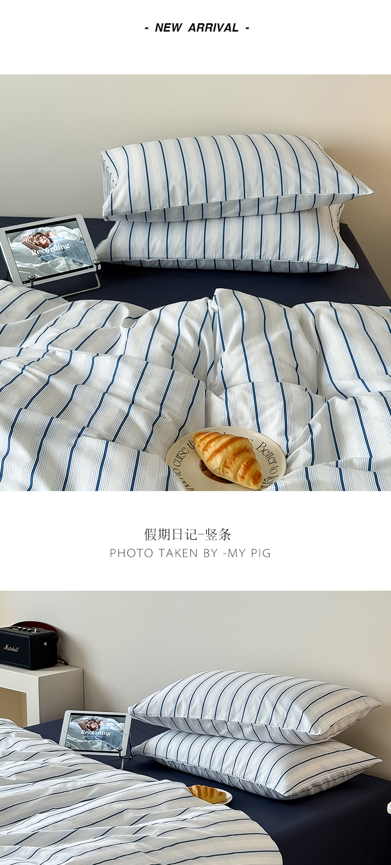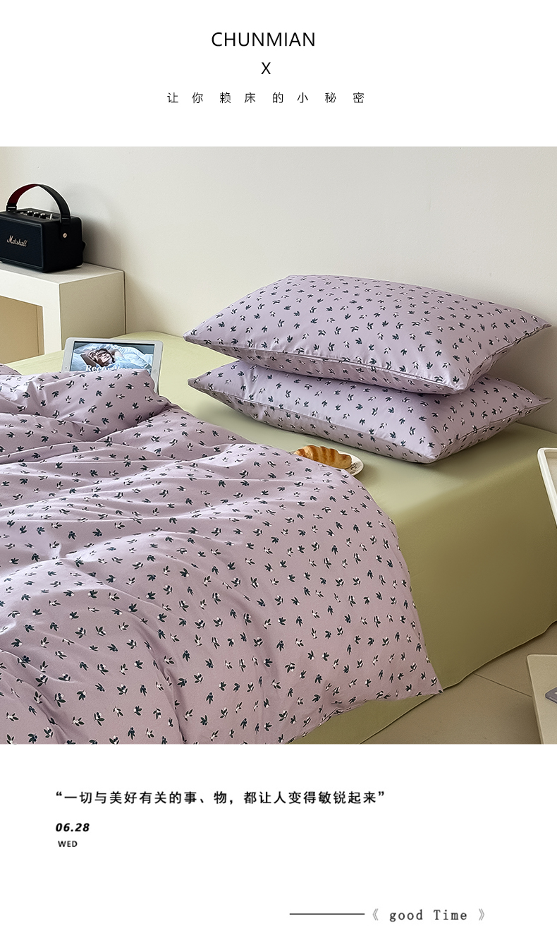 商品名称:(总)Mr.pig猪先生水洗棉 2025新款A类全棉水洗棉小清新数码印花四件套纯棉床单被套学生宿舍三件套床笠款床上用品