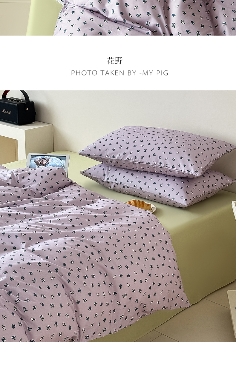 (总)Mr.pig猪先生水洗棉 2025新款A类全棉水洗棉小清新数码印花四件套纯棉床单被套学生宿舍三件套床笠款床上用品