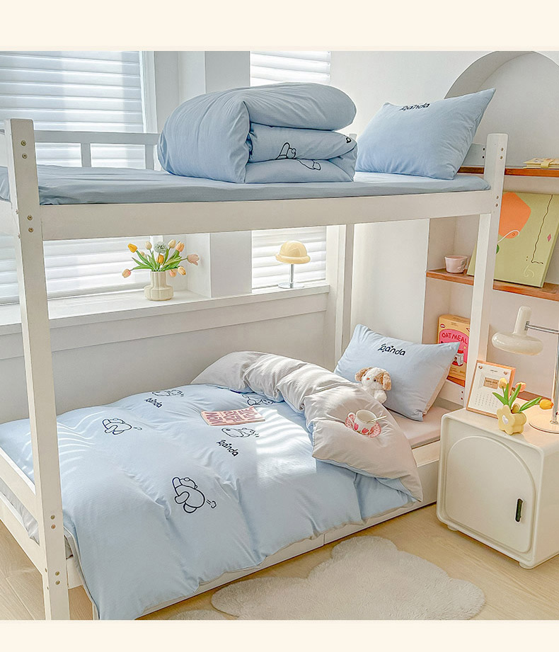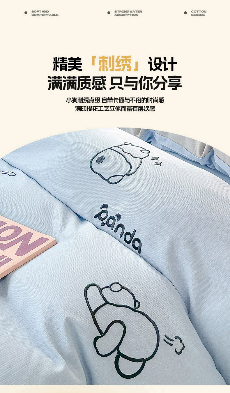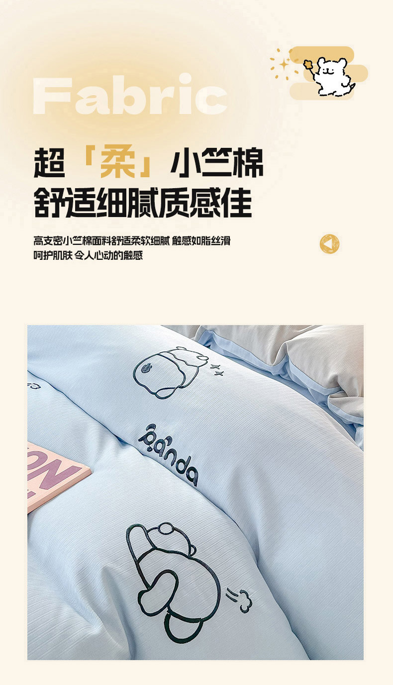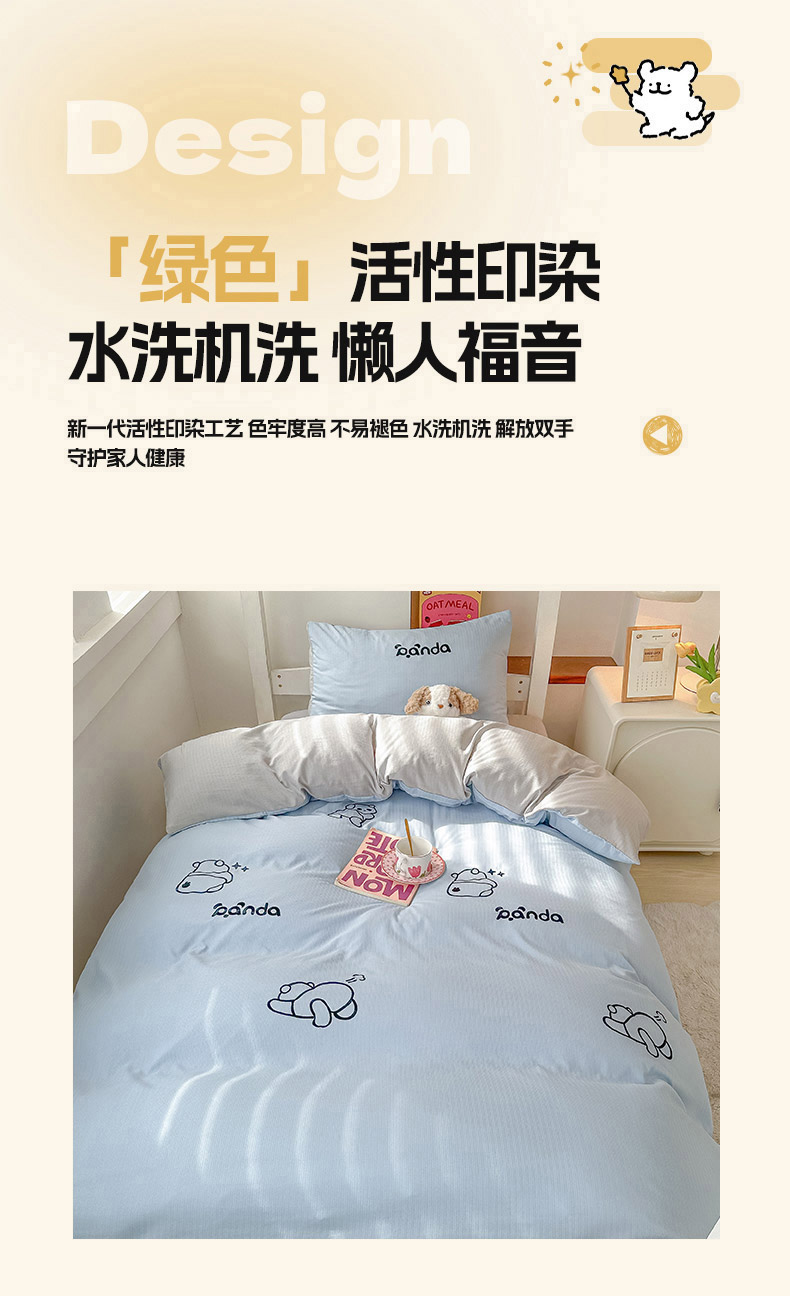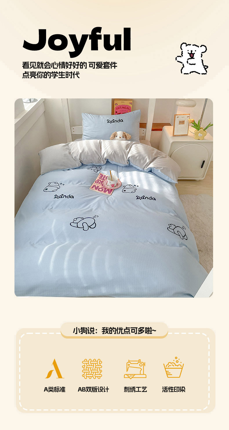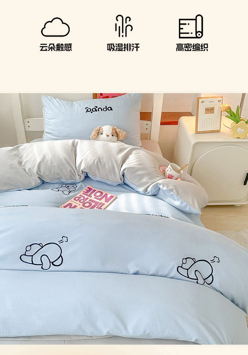 当前位置: 91家纺网 > 商品网购 > 床品套件 > 三件套 > 多乐家纺 2025新款超柔A类母婴级加厚小竺棉学生宿舍三件套上下铺三件套四件套 Panda-蓝灰