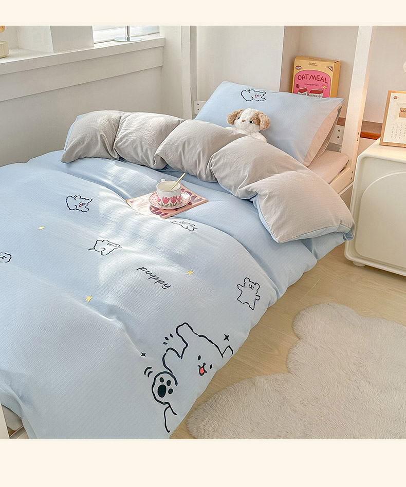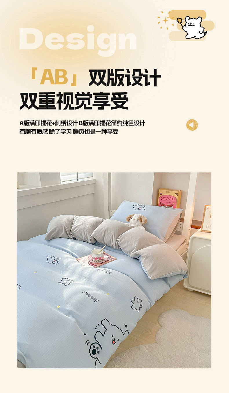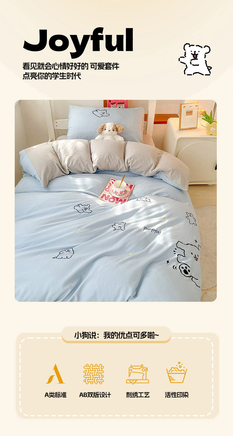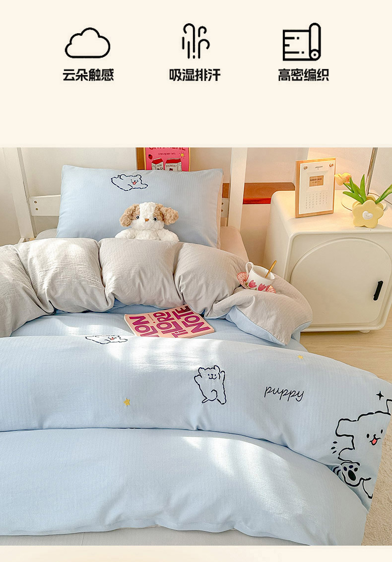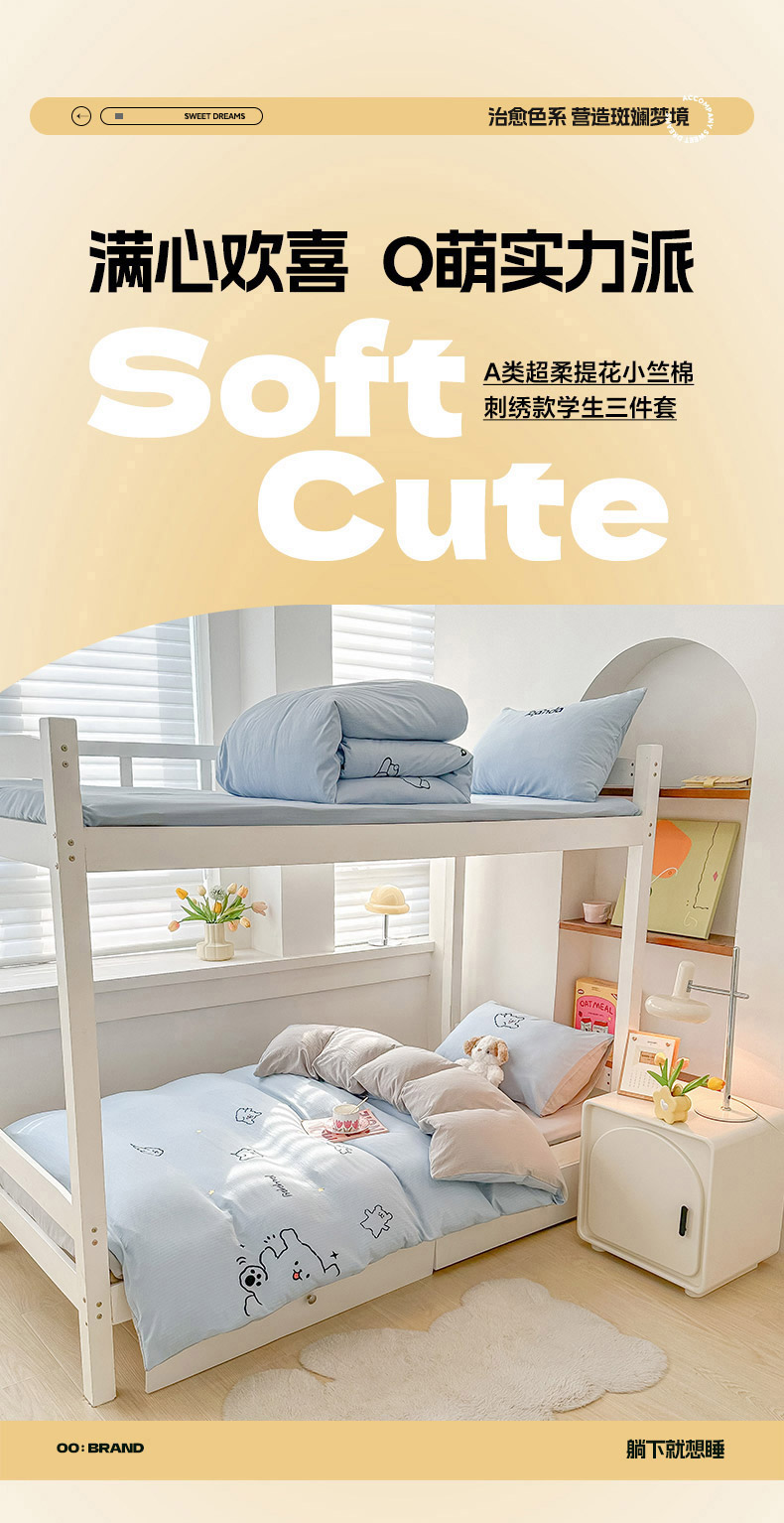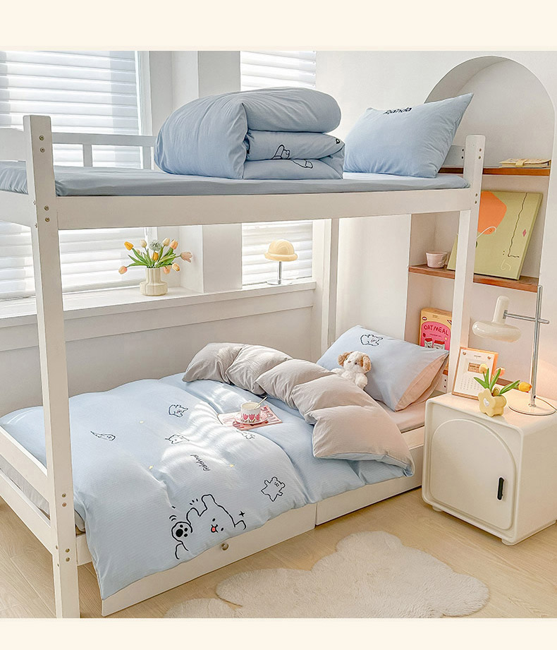 当前位置: 91家纺网 > 商品网购 > 床品套件 > 三件套 > 多乐家纺 2025新款超柔A类母婴级加厚小竺棉学生宿舍三件套上下铺三件套四件套 小白-蓝灰