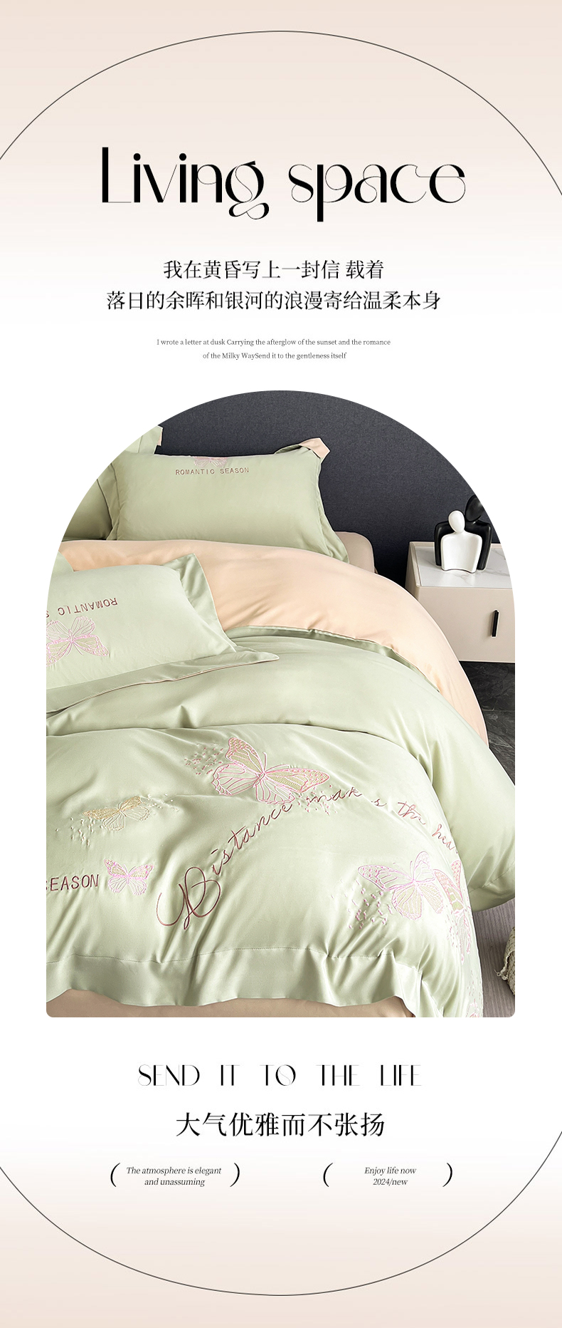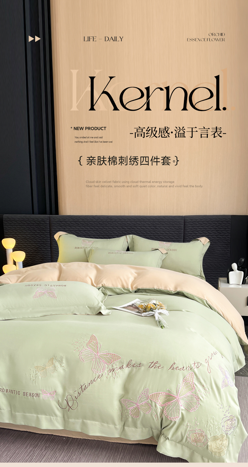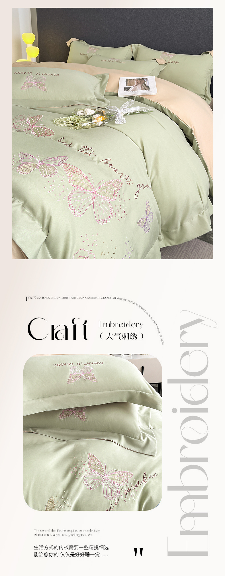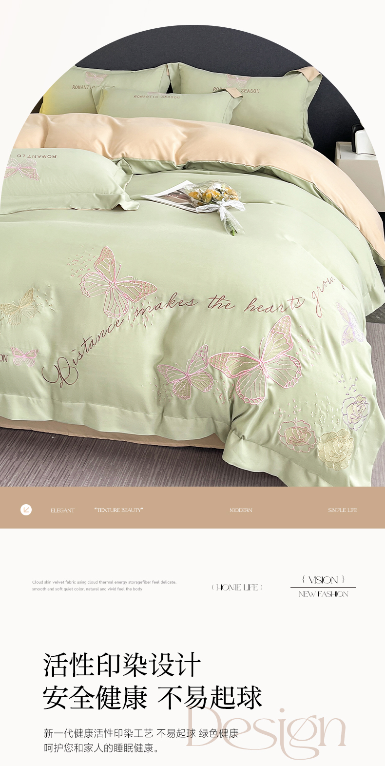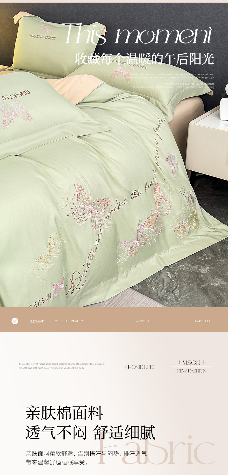 当前位置: 91家纺网 > 商品网购 > 床品套件 > 四件套 > 其它四件套 > 青柚 2025新款梦蝶亲肤棉刺绣四件套(小号不低于98元,标准不低于138,加大不低于148,以此类推,低价必投不撤销) 梦蝶-草绿