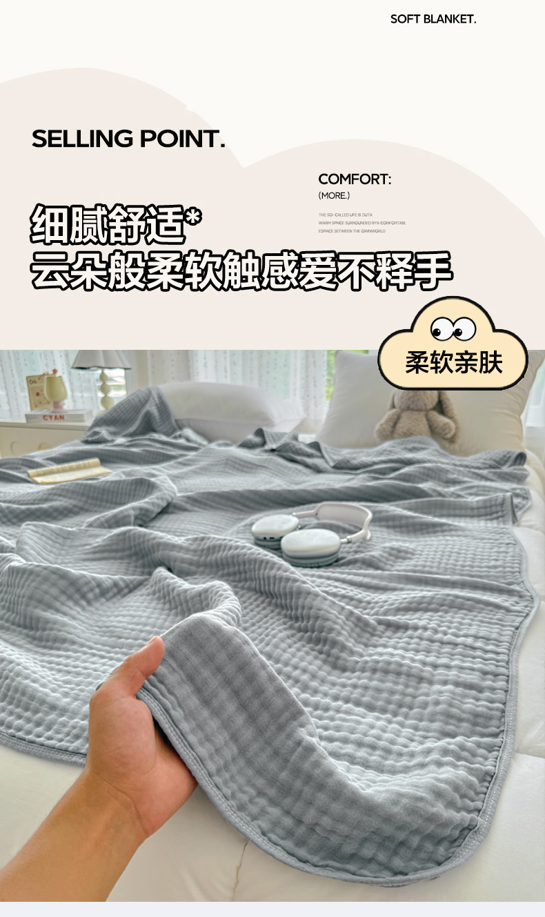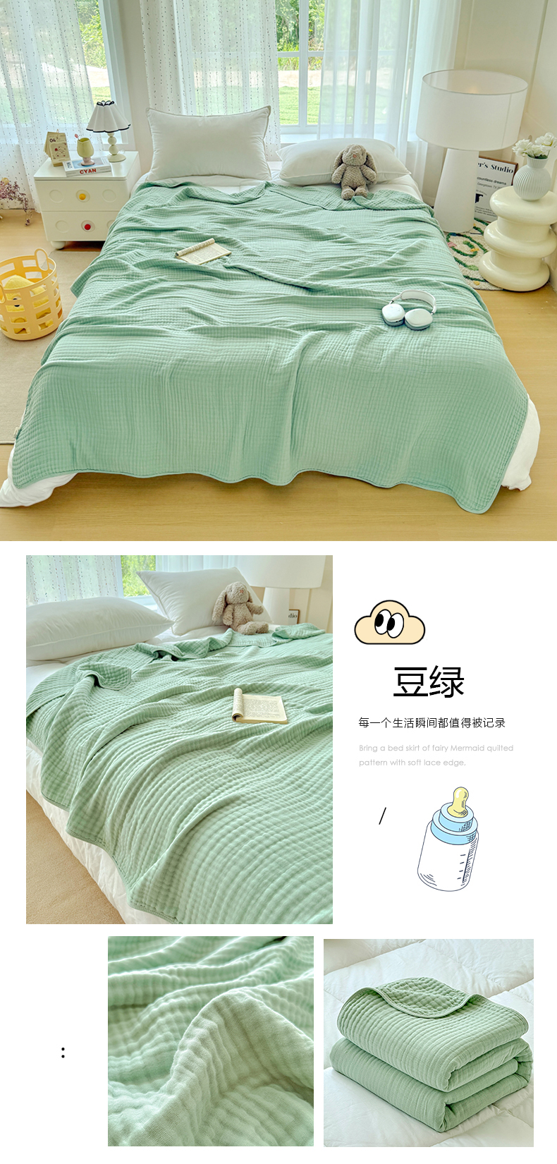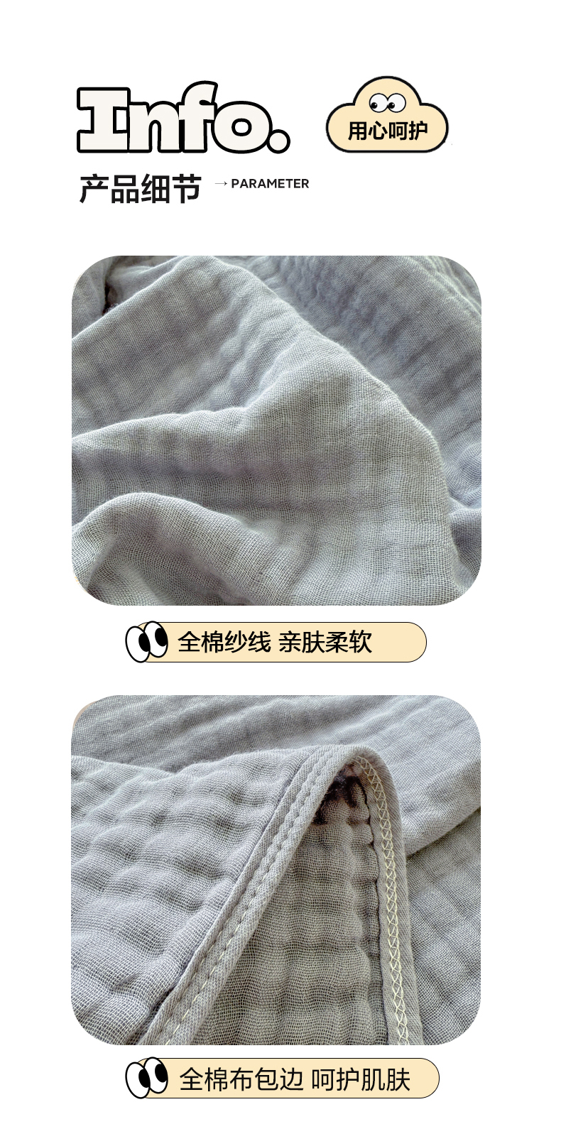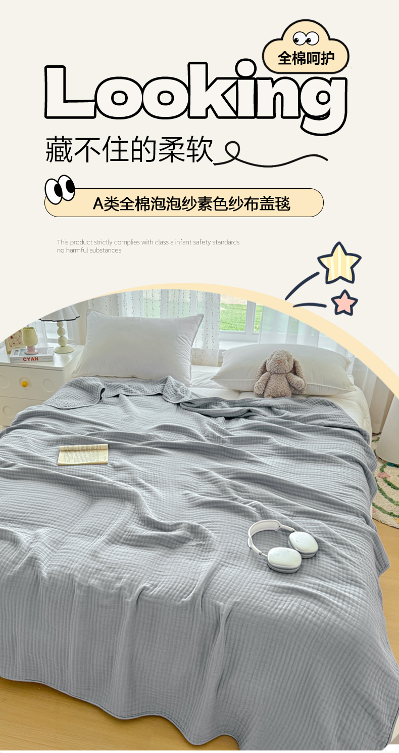 商品名称:棠薇家纺 2025新款A类日韩无印风泡泡纱六层素色纯色盖毯毛巾被夏被皱皱毯婴幼毯浴巾 泡泡纱雾蓝
